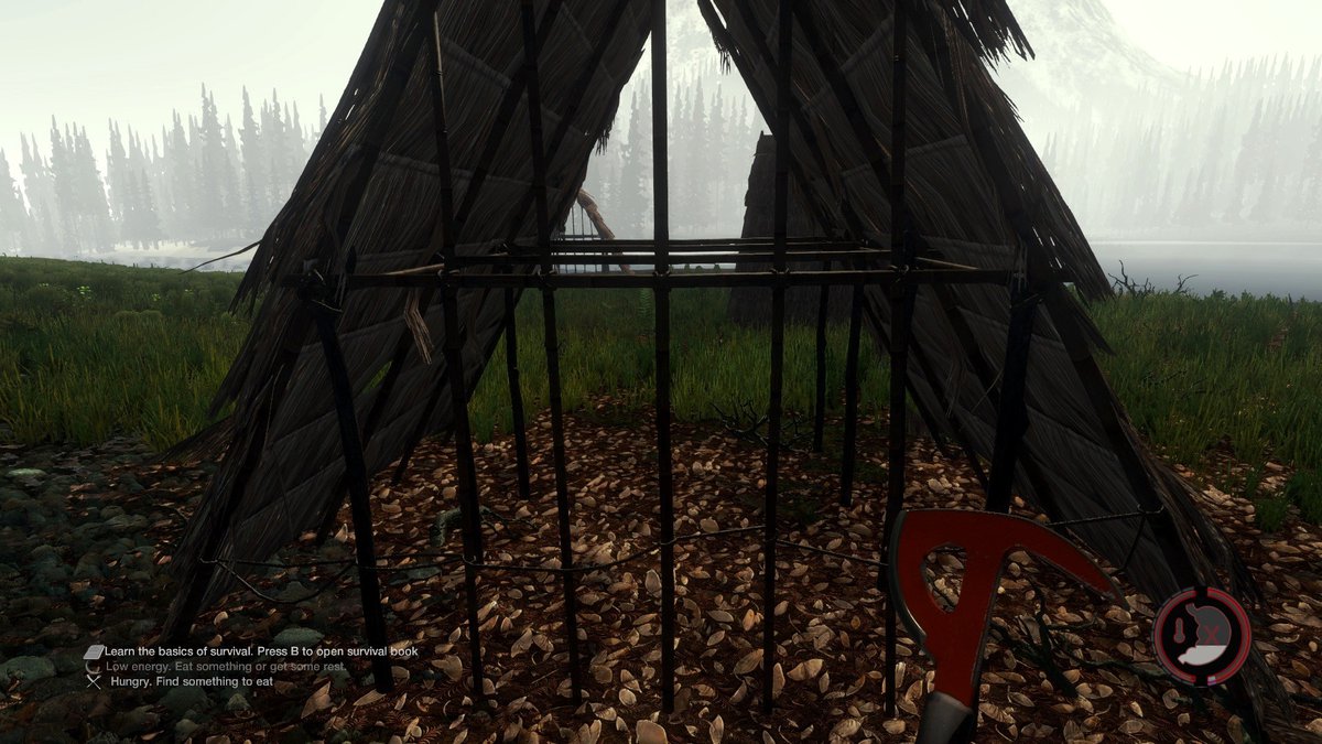 Геймплей будет сосредоточен полностью на одной цели - выжить. С первых минут вам будет дан топор, используйте его по назначению и постройте крепкий, надежный дом. В своем блокноте мы выбираем 3D модель того, что хотим построить, ставим его на место, где хотим построить, и нам покажется, что необходимо для строительства. В основном это бревна, палки и камни. Инвентарь в игре не бесконечный, в него вмещается определенное количество камней, палок и т.д. Бревна можно носить только в руках по 2 штуки и то, с приличным расходом выносливости. Построив дом у вас появится место для ночлега, но это место еще нужно защитить. В этом деле вам помогут ловушки, на разные виды которых, вы, также, потратите определенное количество ресурсов.