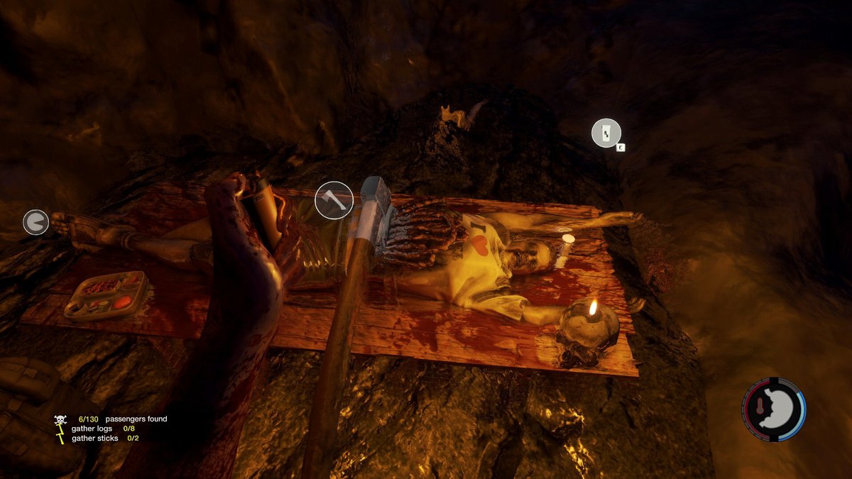 Если днем вы чувствуете себя в относительной безопасности с топором под боком, то ночью чувство разом испепеляется. Ночь начинается с того, что вы решите вздремнуть, дабы с утра снова продолжить работу. Вы просыпаетесь от странного шума трескающихся веток, естественно, стоит проверить, может дичь попала в смертельный капкан. Порядком нашумев вы никого не найдете, но паранойя обостряется, вам кажется, что за каждым вашим шагом пристально наблюдают. Зажгите костер, чтобы согреться и вы подвергнетесь сокрушимой атаке со стороны группы каннибалов, которая следила за вами и выжидала все это время. Отбившись, вы станете предельно осторожней. Возможно, покроетесь грязью, чтобы скрыться во тьме. Залезете на дерево. Почему бы и нет? Выжить любой ценой, а?