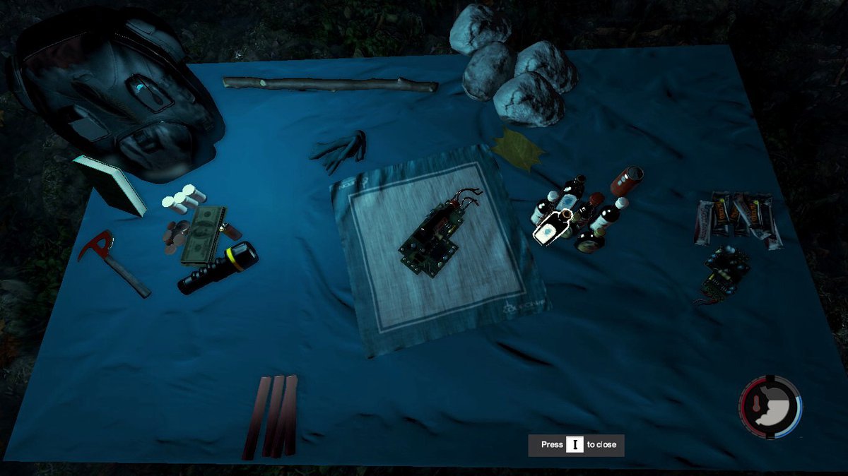 Исследуя местность в поисках еды вы, также, сможете найти прочие нехитрые предметы, которые помогут вам в выживании: копье, которое вы сможете использовать, чтобы ловить рыбу в водоемах; монеты для создания взрывчатки; сигнальные шашки, фонарик, батарейки к нему, таблетки для восстановления здоровья, теннисный мяч для отвлечения мутантов, плеер, чтобы расслабиться, восстановить выносливость и выдать свое убежище каннибалам. Помимо этих предметов существуют предметы для крафта, это, как я уже говорил палки, камни, листья и т.д. В дневное время вы можете запастись едой, занявшись охотой. Копье поможет вам поймать рыбу, топором можете освежевать кролика или варана. Шкуру варана можно использовать в качестве брони.