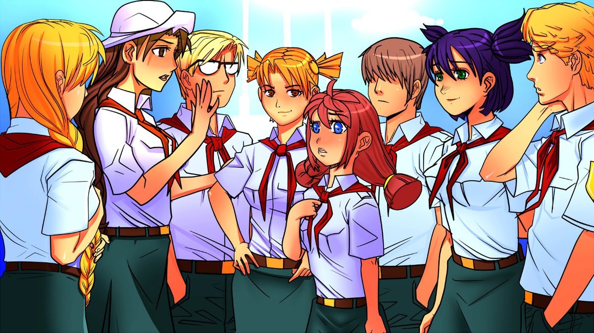 Сначала я хотел бы поговорить про историю создания и разработки игры. Всё начиналось с имиджбордов, а именно с сайта iichan.ru "Ычан". Команда разработчиков набиралась среди энтузиастов из числа посетителей имиджборд. Долгое время она не имела официального названия и скромно именовалась Eroge team или просто Эрогеи, и только незадолго до релиза появилось название Soviet Games.