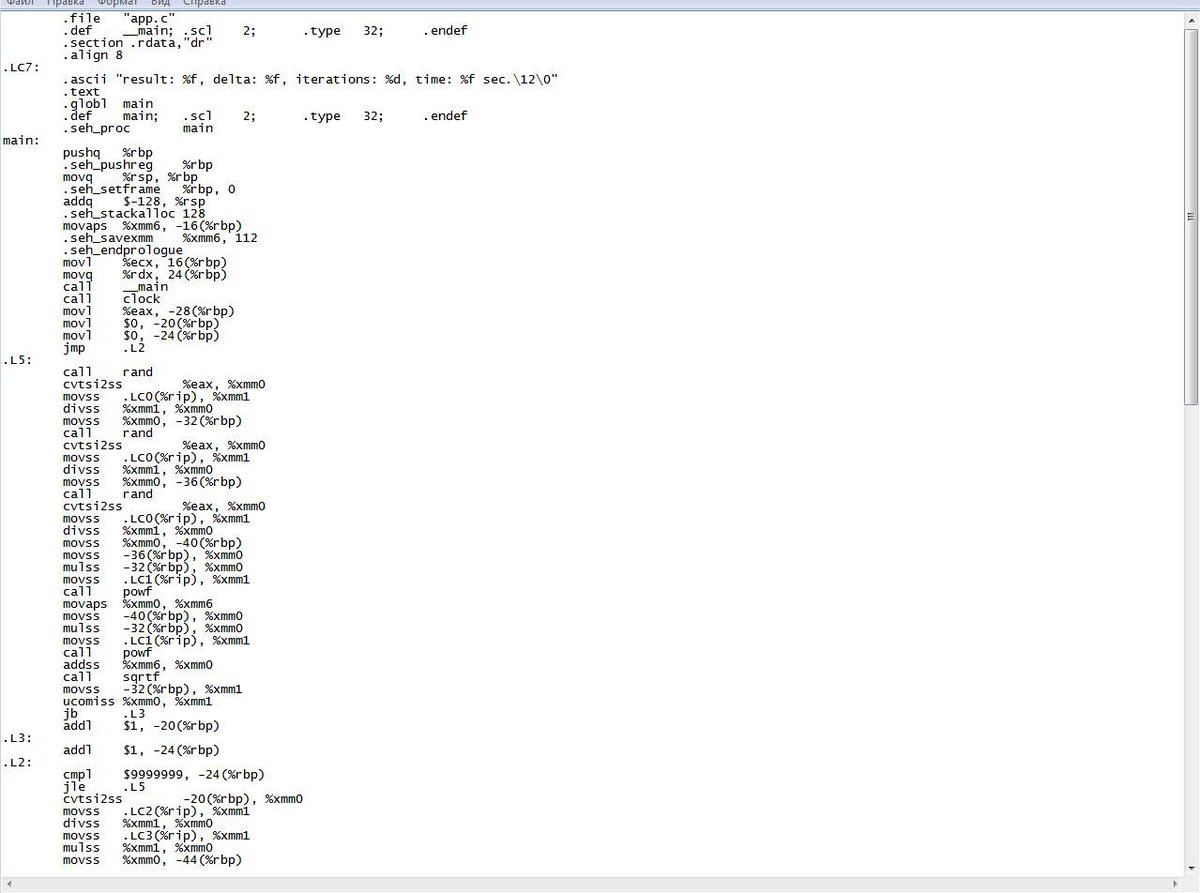 Строка компиляции программы: GCC –s –O2 app.c –o app.exe –lm