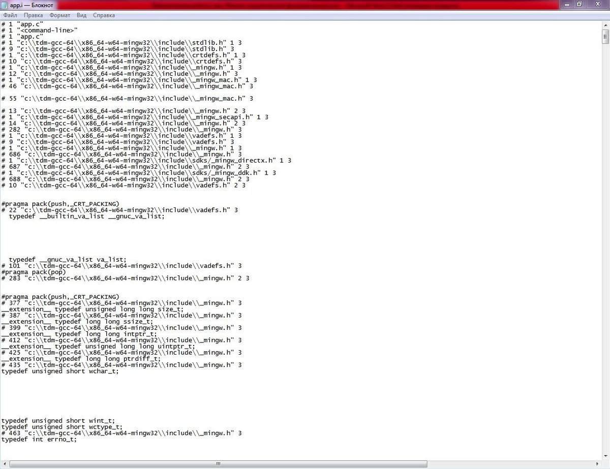 • Создание файла с исходным текстом на языке С, после прохождения стадии обработки препроцессором: GCC –E app.c –o app.i