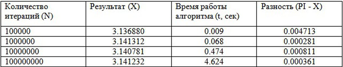 • Количество итераций: N=100000, 1000000, 10000000, 100000000