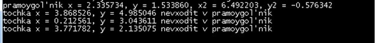 printf("tochka x = %f, y = %f vxodit v pramoygol'nik", x0, y0);