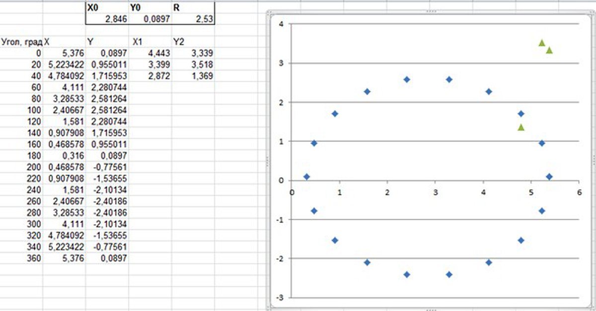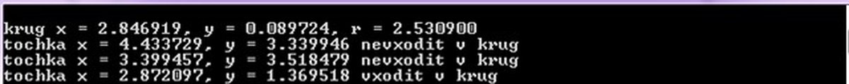 printf("tochka x = %f, y = %f vxodit v krug", x0, y0);
