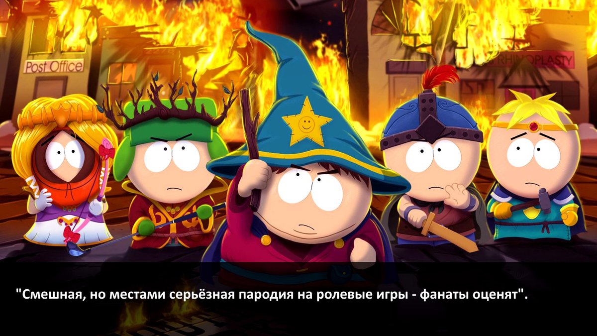 Честно говоря, ролевые в привычном понимании порядком поднадоели: абсолютно во всех подобных проектах преобладает готическая архитектура, априори мрачная и зловещая, задающая аналогичное настроение в ходе игры; монотонные, дико надоедливые монологи, в ходе которых действующих лиц хочется ударить чем-нибудь тяжёлым; "бей-перекатывайся-лечись-блокируй"; ну и квесты по типу "убей и принеси то, не знаю что". South Park выглядит такой сатирой, высмеивающей все эти дотошные однотипные RPG и жанр в частности, при этом играть в неё по-настоящему интересно, а иногда она и вовсе кажется правдоподобной пародией ролевых развлечений.