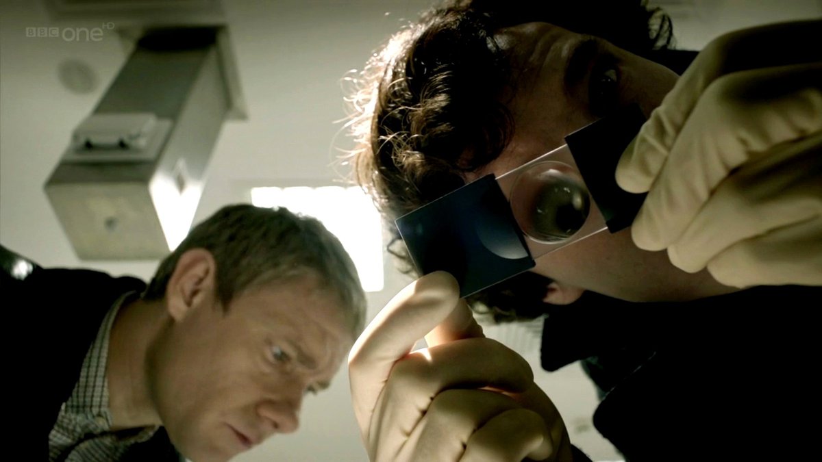 Интересная подача его метода мышления, который, также, подвергся предмету споров, называемый дедукцией с одной стороны и индукцией с другой. В данной сфере мои знания ограничены, потому не буду горячо свидетельствовать аргументами одной из сторон. Вернемся к методу подачи. SMS, которые отправляет или получает герой, ловко мерцают на экране, информируя зрителя. Так, в серии, которой расследуется дело Ирэн Адлер нам мимолетно показывают переписку Холмса и «доминантки, поставившей на колени нацию». Этот процесс завораживает, учитывая, что Холмс на шаг впереди зрителей и всех людей с нормальным интеллектом.