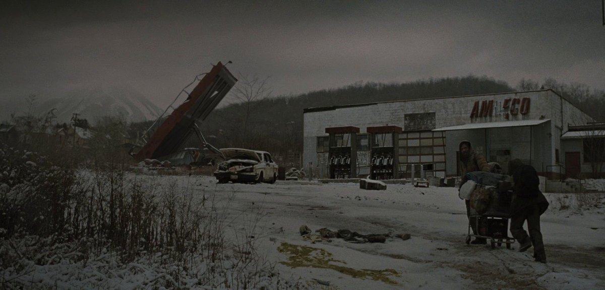 Весьма верное описание атмосферы в фильме. Картина режиссера Джона Хиллкоута "Дорога" просто поражает своей жестокостью, наполняя наши сердца отчаянием. Пост-апокалипсис наступит не от нашествия зомби, атаки инопланетян или ядерной войны. Природа сама все устроит. Различные катаклизмы, стихийные бедствия, такие как пожары почти не дали человечеству надежду на выживание и светлое будущее. Цивилизации нет. Мир вернулся в темные века, где каждый сам за себя,а запасы еды и воды с каждым днем все меньше и меньше. Люди стали объединяться в общины, где процветает каннибализм...