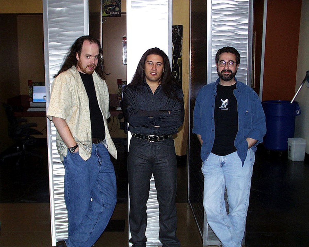 --> На фото слева направо: Том Холл, Джон Ромеро и Уоррен Спектор.Как и любой шедевр, в своё время Deus Ex было очень легко недооценить. Когда игра вышла, она была уже устаревшая по графике, т. е. это действительно уже была некрасивая игра по меркам того времени. Сделанная на движке первого Unreal. Она предлагала игрокам довольно странное сочетание экшена от первого лица и RPG. Как раз в это время выходили самые хардкорные RPG, которые были. И, конечно, Deus Ex здесь смотрелся очень необычно, потому что он гораздо был комплексным, как ролевая игра по сравнению с полноценными RPG, а экшен был не супервыдающимся.
