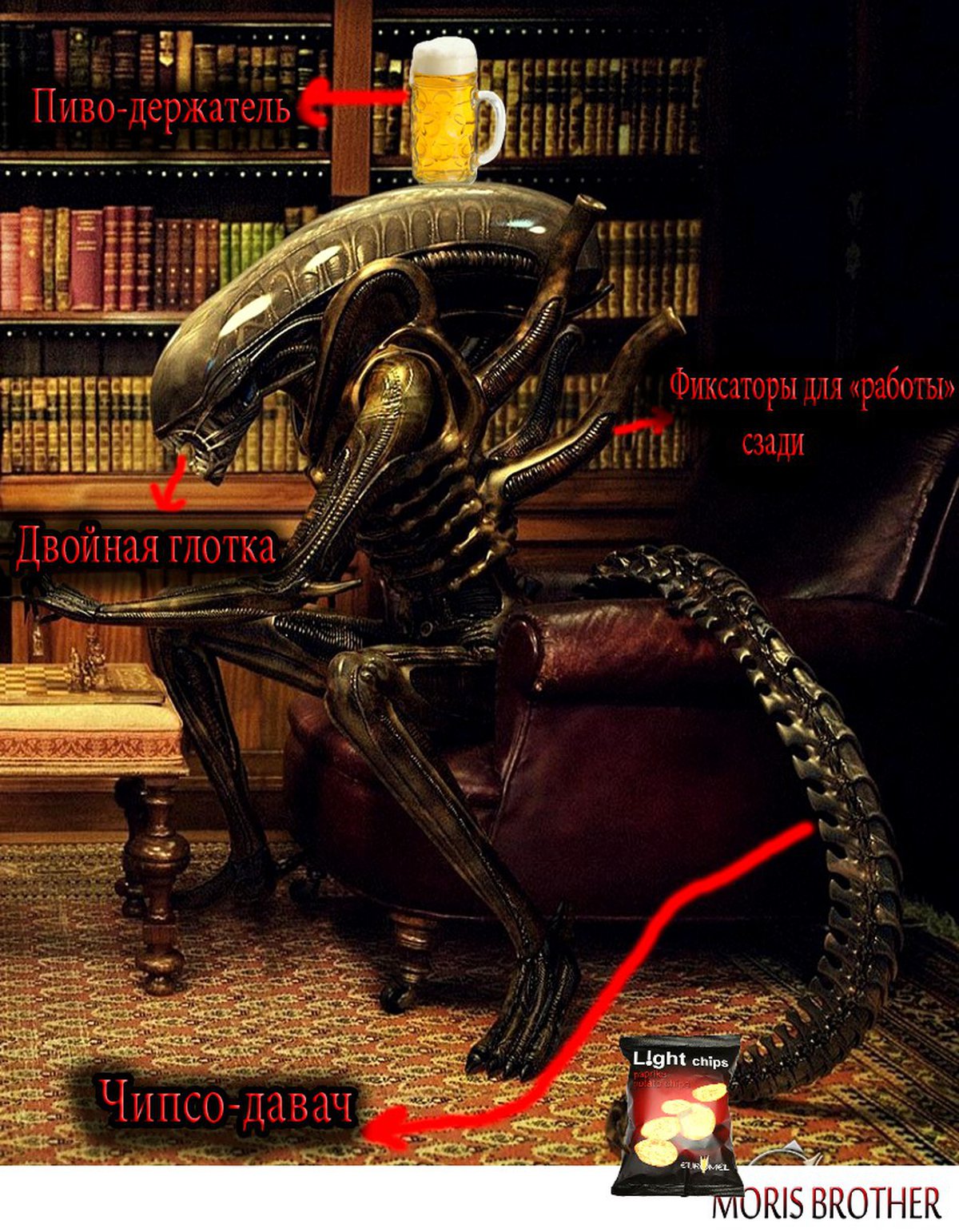 Точно неизвестно как к Ридли Скотту пришла идея создания высокого, чахлого существа, с овальной продолговатой головой напичканной острыми зубами и с выдвижной челюстью, еще и ко всему кровь которого имеет зеленый цвет и свойства кислоты. Монстра который любит свежее мясо, тихую охоту и космические пейзажи. Возможно это один из его ночных кошмаров, которые преследовали его в детстве, или просто представления идеальной девушки в контексте фильма ужаса.