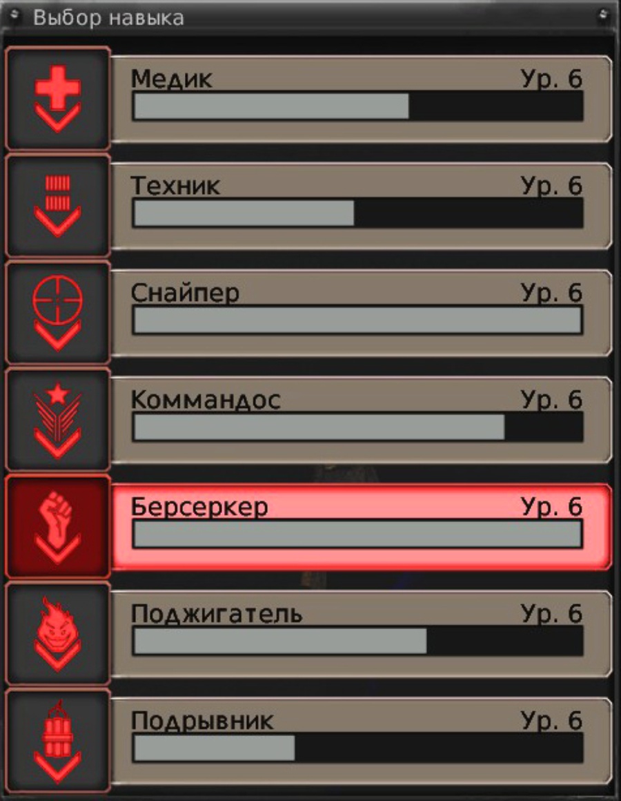 В первой части убийственного этажа хранится целых семь перков, которые вы можете наглядно посмотреть на картинке. Все классы полностью уникальны и не похожие друг на друга. Помимо специального оружия, каждый навык обладал определенными свойствами. Например, Берсеркер мог бегать быстрее всех, а Медик легко противостоять блевотине толстяка.