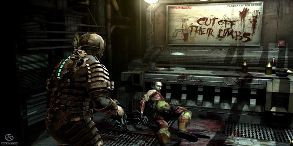 Первая часть игры вышла 21 октября 2008 и до сих пор считается одним из самых популярных и удачных хорроров, которые вышли за последнее время. В нем было все: леденящая кровь атмосфера, ужасные моменты, «молчаливый» главный герой. Но, по большому счету, о первой части мне сказать нечего, потому как скажу честно – я её не прошел. Меня хватило буквально на три – четыре главы. Не поймите меня превратно, я не прошел её не из-за страшных моментов, от которых я, как большинство из нас, начинал обильно налаживать «кирпичи» в свои штаны, откатываться на кресле назад и как сумасшедший начинал бить об монитор руками, крича при этом что то в стиле «Нет-нет…только не мой мозг вы *банные некроморфы». Отнюдь. Я не смог пройти игру до конца, просто из-за убогого и неудобного управления. Знаете, вообще то это труднее всего рассказать о кривости управления или хотя бы попытаться объяснить какое оно нелепое и унылое. За свой геймерский стаж я повидал, и поиграл во множество игр, с не самым лучшим управлением. В такие игры, в которых камера, к примеру, это как автономная республика, которая живет по своим, совершенно отстраненным от реальности, правилам, не поддаваясь при этом никаким законам физики, постоянно цепляясь к самым идиотским местах в плане обзора, или же в игры, когда ты только и мечтаешь о том, что бы камера была не под твоим контролем. Но в этом случаи, никаким другим словом, как пиз*ец это не назовешь. Потому, что в игре, где главным аспектом для выживания является (пускай и не делать headshot), а всего лишь отстреливать конечности, на силу нацелившись и приготовившись к выстрелу, мышка, как будто глумясь над тобой говорит «Е неее братюнь, я тут повернусь еще на пару сантиметров вправо, что бы жизнь тебе сладкой не казалась» и конечно же ты промахиваешься, чем собственно, пользуется некроморф, пытаясь разодрать тебя на части. О каком дальнейшем прохождении может идти речь после такого? За то небольшое время, что я в нее поиграл, я увидел все, что присуще отличному хоррору - жуткая темная атмосфера, подозрительные стремные звуки, и туча монстров. Хотя, с последним все было наоборот. Потому как «фишкой» игры, именно в плане хоррора, была доля ожидания. Ожидание того, что на тебя вот-вот нападут, но этого не случалось. И когда ты ловишь себя на мысли о том, что «Что то меня уже давно никто не пытался убить» и думаешь, что скоро полезут монстры, а их все нету – это и есть доля ожидания. Ведь именно в тот момент, когда ты уже расслабился после очередной головоломки (что кстати в игре было довольно классно сделано) и мирно идешь сдавать задание – на тебя резко и без предупреждения нападают монстры, что до жути пугает. В задумке, реализации и тому подобному, игра получилась на высшем уровне и сразу схлопотала себе кучу фанатов. Игра – просто конфетка (за исключением тупого порта управления). А еще там была девушка, с просто а х р е н и т е л ь н о й задницей, что не мало доставляло. Потому, ребята, если это кто читает, и знает, что вышел какой то патч, исправляющий кривизну управления, пожалуйста, напишите в коментах, буду признателен. Ах да чуть не забыл, недавно в одной группе наткнулся на прикольную картинку касательно игры - И вот только не нужно мне говорить, что вы так не делали.