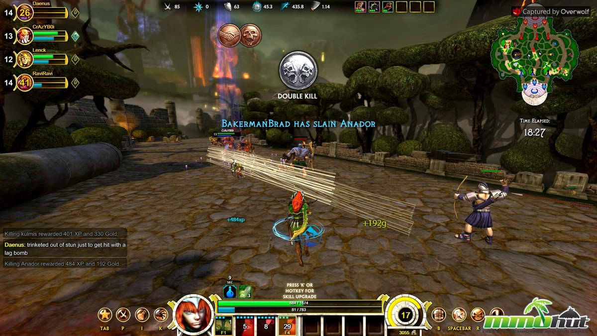 Попадая в игру тут же замечается первое отличие - другой вид. Если в доте, лоле, хоне вы имели дело со вторым (или каким там) видом, то тут от третьего лица. ОТ ТРЕТЬЕГО. Спустя секунд 5 вы замечаете второе отличие- non-target систему. Если во всех остальных играх, которые произошли от доты надо нажать на цель правой кнопкой, то тут надо жмать левой. И не на противника, а на... ничего. Просто нажимаете левую кнопку мыши, и ваш бог производит автоатаку. Можно просто зажать. Скорость атаки зависит от параметра с таким же названием. Он же повышается вследствие воздействия различных эффектов, артефактов(которые надо покупать в магазине).