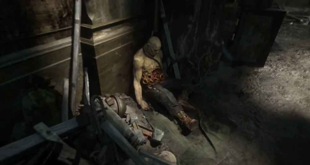 Мои любимые надписи кровью, такие искренние, такие будоражащие! Момент ловился плохо, и все, что удалось разобрать, это: "Беги от крови / плати по долгам" и "Howlles (пустые?) приходят в ночи". Либо кто-то оцелованный бездной оставляет послания ГГ, либо этот бритый парень перед смертью решил написать нам месседж.