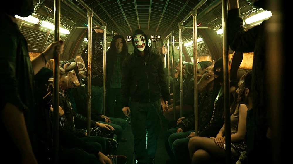 Обязательно нужно отметить отличную задумку с общением между хакерами. Это, пожалуй, одна из лучших и интересных визуализаций простой переписки между людьми, и так уже приевшегося «взлома» систем, на черных экранах, со многими непонятными буквами и символами. Хакеры общаются между собой в так называемом Теневом или Тёмном интернете, или «Темной Сети». У них есть только вымышленные имена и подставные аватары. В «Кто Я?» простое общение между хакерами или попытка найти дыру в очередной системе, прекрасно визуализировано в виде старого и размалёванного граффити состава метро, где каждый хакер носит маску, все в модных и стильных кожаных куртках, и балахонах. Это смотрится намного круче чем всё, что было в любом фильме где хоть кто-то что-то делал за компьютером. Авторы прекрасно воплотили этот момент, так как в фильме данного жанра, такой вот компьютерной писанины довольно много и согласитесь смотреть на очередную придуманную обкуренным дизайнером, несуществующую программную оболочку в сто первый раз было бы скучно. А так это очень большой плюс для фильма.