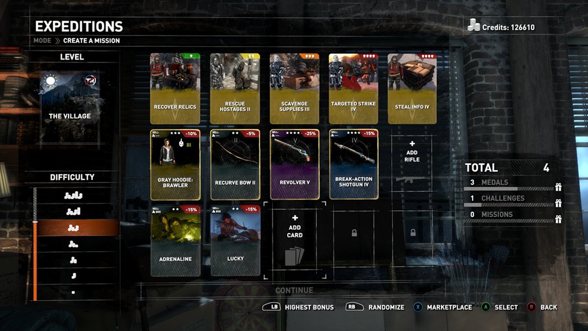 В Rise of the Tomb Raider вы зарабатываете кредиты за исследование мира или прохождение испытания. За эти кредиты можно купить наборы карт экспедиций. Использованная карта становится модификатором игровых режимов вне одиночной кампании; некоторые из них могут просто увеличить головы противников, а другие - дать вам более реальное преимущество.