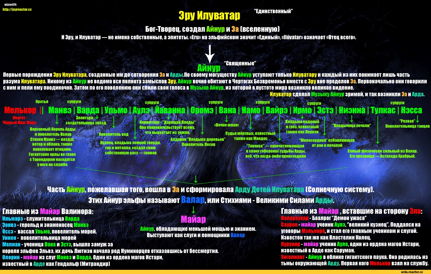 Кроме того, вместе с валарами в Арду пришли и менее могучие духи - майары. Среди них мало значительных представителей было, однако были некоторые, которых все знают:
