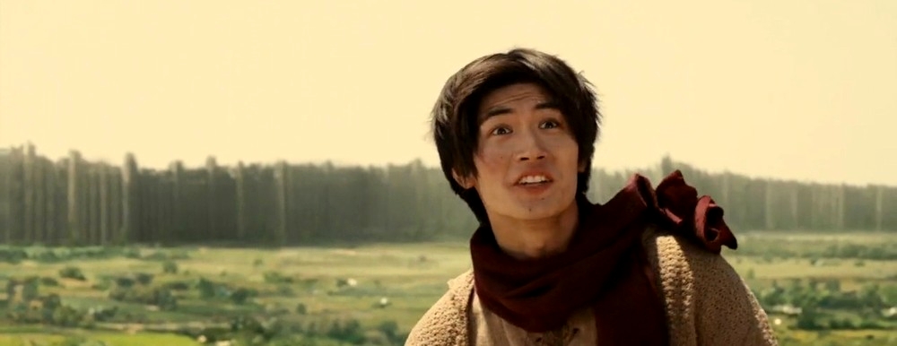 Меньше всего претензий у меня к Армину, он слюнтяй и такой худенький японец может играть эту роль без проблем. Больше всего претензий к Микасе. Хотя и Эрен тут тоже не самый лучший, ни единого разу никем не ударенный и вообще не покалечившийся ходит, как весь избитый и израненный. Ладно, тут дела обстоят худо, почти все в той местности умерли, но все равно он как дауненок в третьей степени переживает эту ситуацию. И-и по началу весь такой крутой, ракету ногами ебошит, умереть не боится, а на деле моржик поганый. Бомбануло. Эрен убогий, но Микаса, она раздражает меня больше. И виновата не она, её испортили сами киноделы. Из нее под вторую половину первого фильма сделали не понятно что. И к Эрену она относится не так. Не любит его, не переживает за него теперь... В общем странная. И кстати, тот супер убийца Шикишима (я все таки разузнал его имя) пристроился к её заднему приводу. Или же это мотивация для Эрена? Ах да, есть еще ребенок, девочка, которая по задумке должна была плакать, но почему-то просто три раза прокрикивает "ААА!". Это всего лишь ребенок. Нет, японский ребенок. Один хер вырастет в таких же супер-актеров. А может быть к тому времени японцы станут лучшими киноделами? Да не-не, бред какой-то.