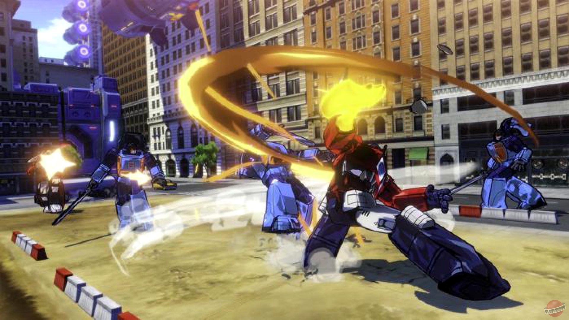 Под управление игрока попадает один из пяти героев (Оптимус Прайм, Бамблби, Сендвайпер, Уилджек и Гримлок), которыми мы будет управлять в отдельности в начальном эпизоде, чтобы ознакомиться с различиями в арсенале и механике, а в конце выбрать наиболее понравившегося для выполнения всех последующих миссий. Если говорить откровенно, то отличия у героев разве что во внешнем виде и арсенале вооружения. Арсенал надо сказать не бедный: мечи, топоры, огнеметы, пулеметы, самурайские мечи и все в таком духе. Базовая слешер механика слишком примитивная. Есть два удара, сильный и слабый, от вас требуется лишь умело их комбинировать. Но дело в том, что комплекс приемов беднее некуда. Так что вам раз за разом придётся наблюдать за одними и теми же анимациями. Не спасает положение даже возможность завершить комбо специальным трансформирующим добиванием.