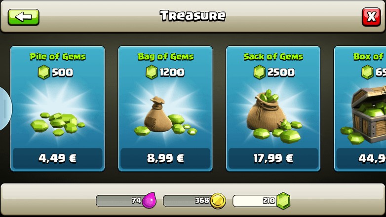 Но нет худа без добра. Платить за игры на карманный девайс приходилось в основном владельцам продукции Apple. Сторонники Android ожидали, пока кто-нибудь купит игру, а затем выложит ее в сеть для общего доступа. Пиратов никто не отменял, а значит разработка «годных» приложений начала сходить на нет. Стоящие проекты стали выходить все реже, а новые игры брали за основу движок и геймплей старых, добавляя лишь небольшие изменения, а с ними и кучу ошибок. Но тут в голову крупным разработчикам пришла отличная мысль. Внутри игровые покупки. Начиная от всяческих бонусов и заканчивая уникальными машинами или персонажами, магазины бесплатных конкретных игр стали приносить неплохую прибыль. Многим проще заплатить за быструю постойку здания или найм воинов, нежели ждать 30 минут.