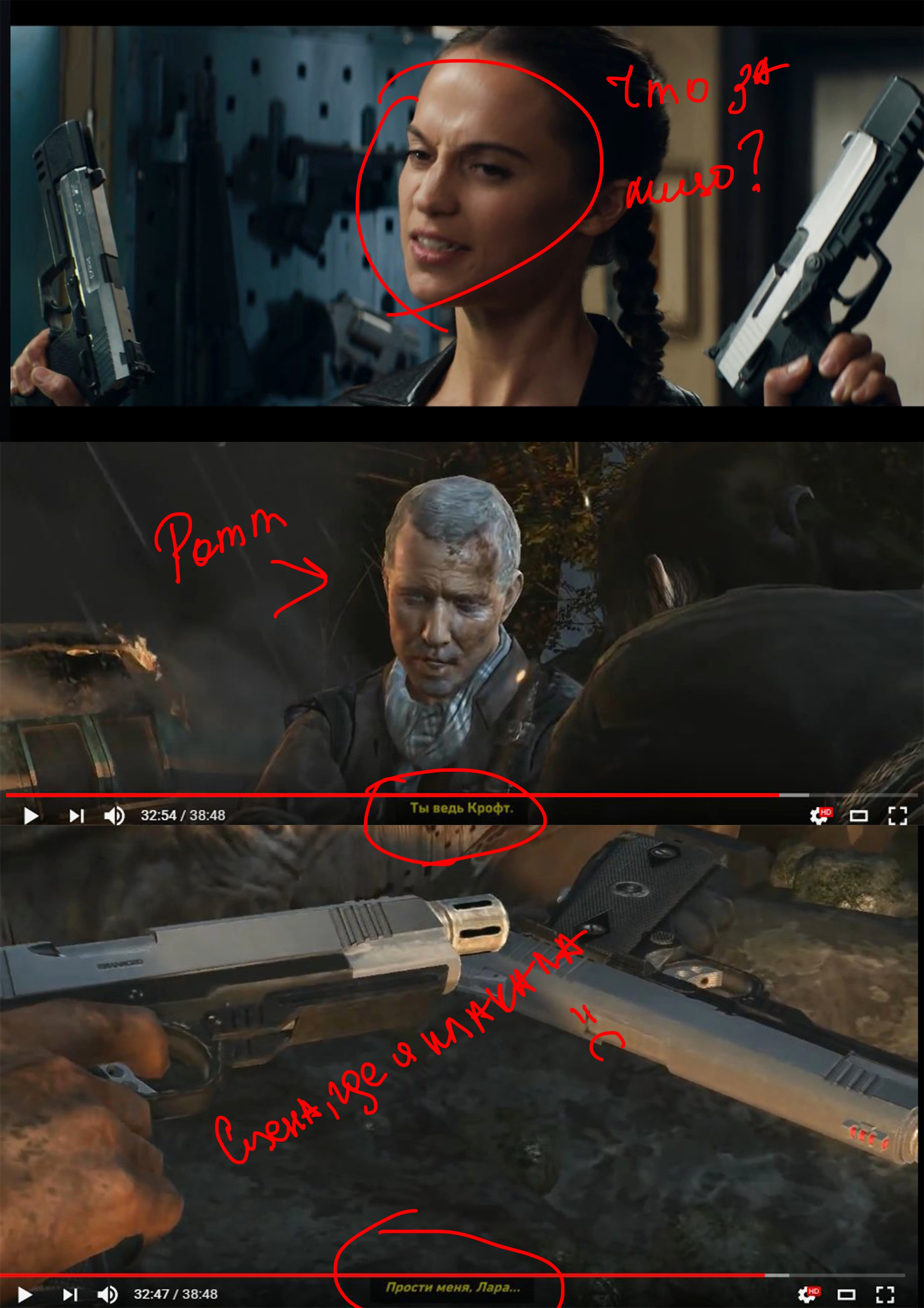 7. Ну, и наконец, последнее(почти, просто я не стала говорить еще о цели Химико, которую в фильме сделали абсолютно другой чем в игре, просто это еще дольше, а букавитакмного). В конце фильма, Лара выкупает свой кулон и видит оружие. Незаменимые пистолеты HK USP. В общем, поясняют, что Лара просто увидела их в ломбарде, и купила их. *ДОЛГИЙ ДОЛГИЙ ВЗДОХ* ВЫ ЧТО СЕРЬЕЗНО? Самой главной, преглавной сценой в игре 13 года, был момент, когда Ротт отдает ей эти пистолеты HK USP, и говорит "Лара, ты же Крофт, не опускай руки". Этот ключевой момент перевернул все представление мое, о том да о всем!!! Я плакала на этом моменте в игре, КАК МОЖНО БЫЛО НЕ СДЕЛАТЬ ЭТО СЦЕНУ В ФИЛЬМЕ??? КОНЕЧНО, ПОТОМУ ЧТО МЫ НЕ СТАЛИ ДОБАВЛЯТЬ ПЕРСОНАЖА РОТТА ИЗ ИГРЫ. ЗАЧЕМ? Как же я разозлилась. И плавно переходим, к завершению.