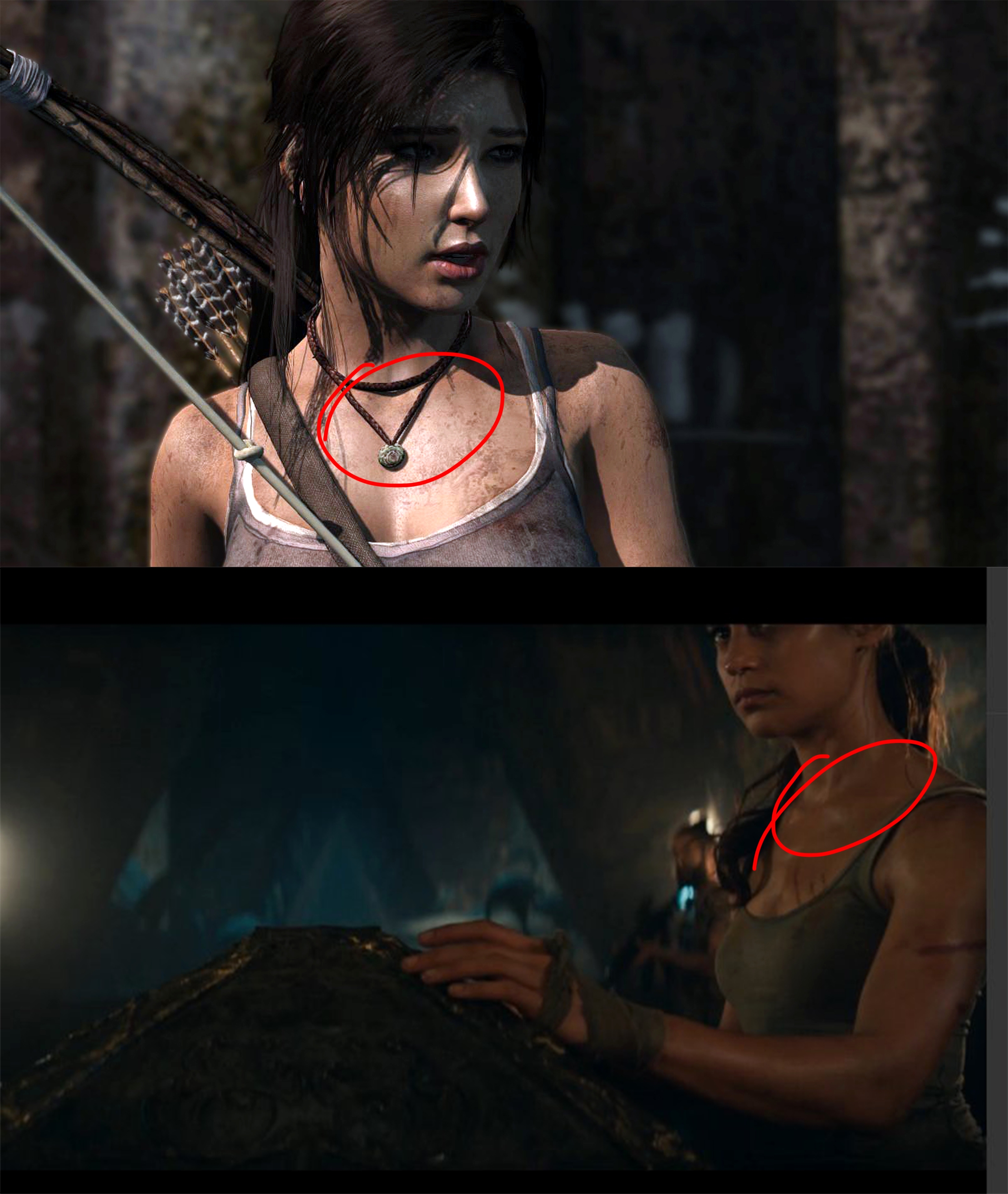 1.С первых кадров фильма, нам дают понять, что она живет худо-бедно, работает вело-курьером, живет чуть ли не в каком-то гараже. Как оказалось позже, она просто не хочет признавать себя графиней и наследовать имущество и дворец отца. Мол, "Вы что, он еще живой, а если я подпишу документики - значит он умер". Что за бред? Главной идеей всех игр, является то, что Лара - богатенькая девочка, ее родители позаботились о том, чтобы все наследство передалось единственной дочке автоматически. Даже в самой игре 2013 года, она не скрывает своего титула и богатство отца.