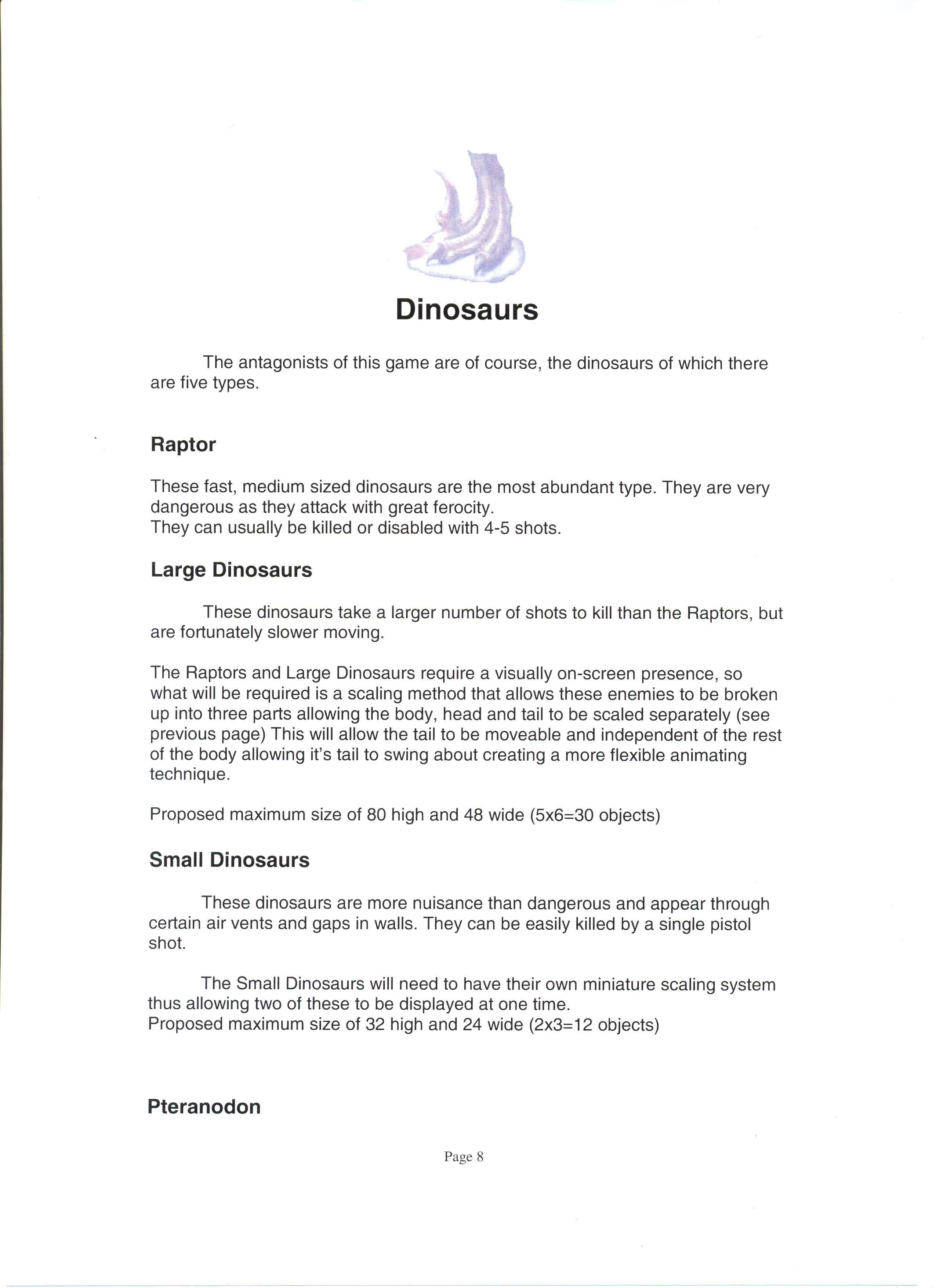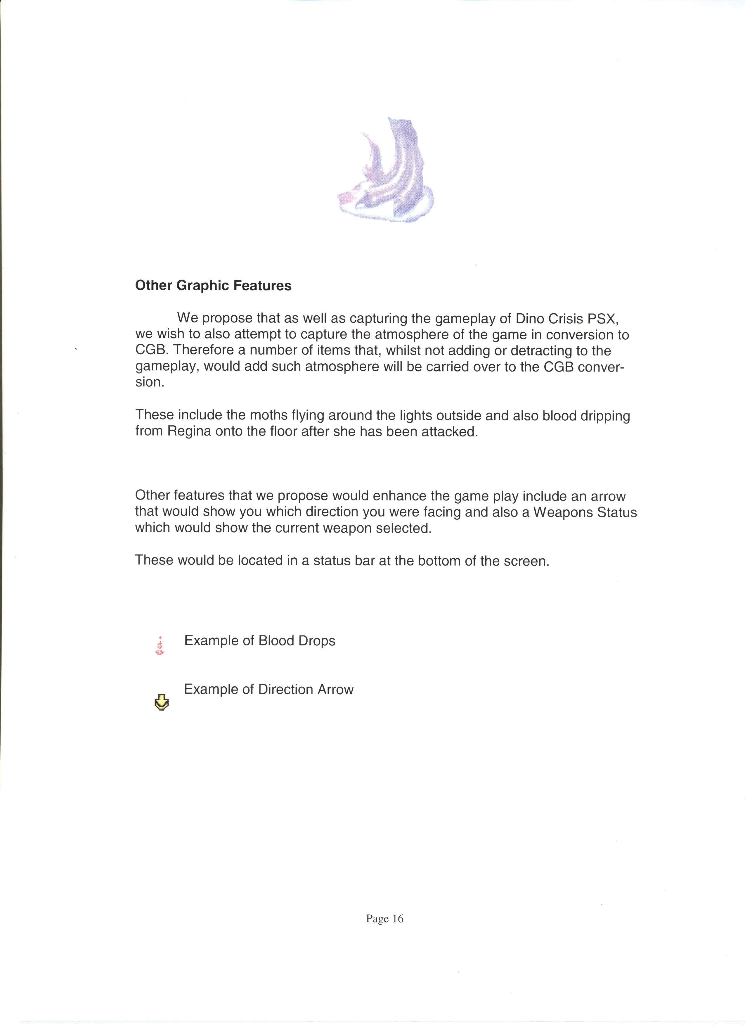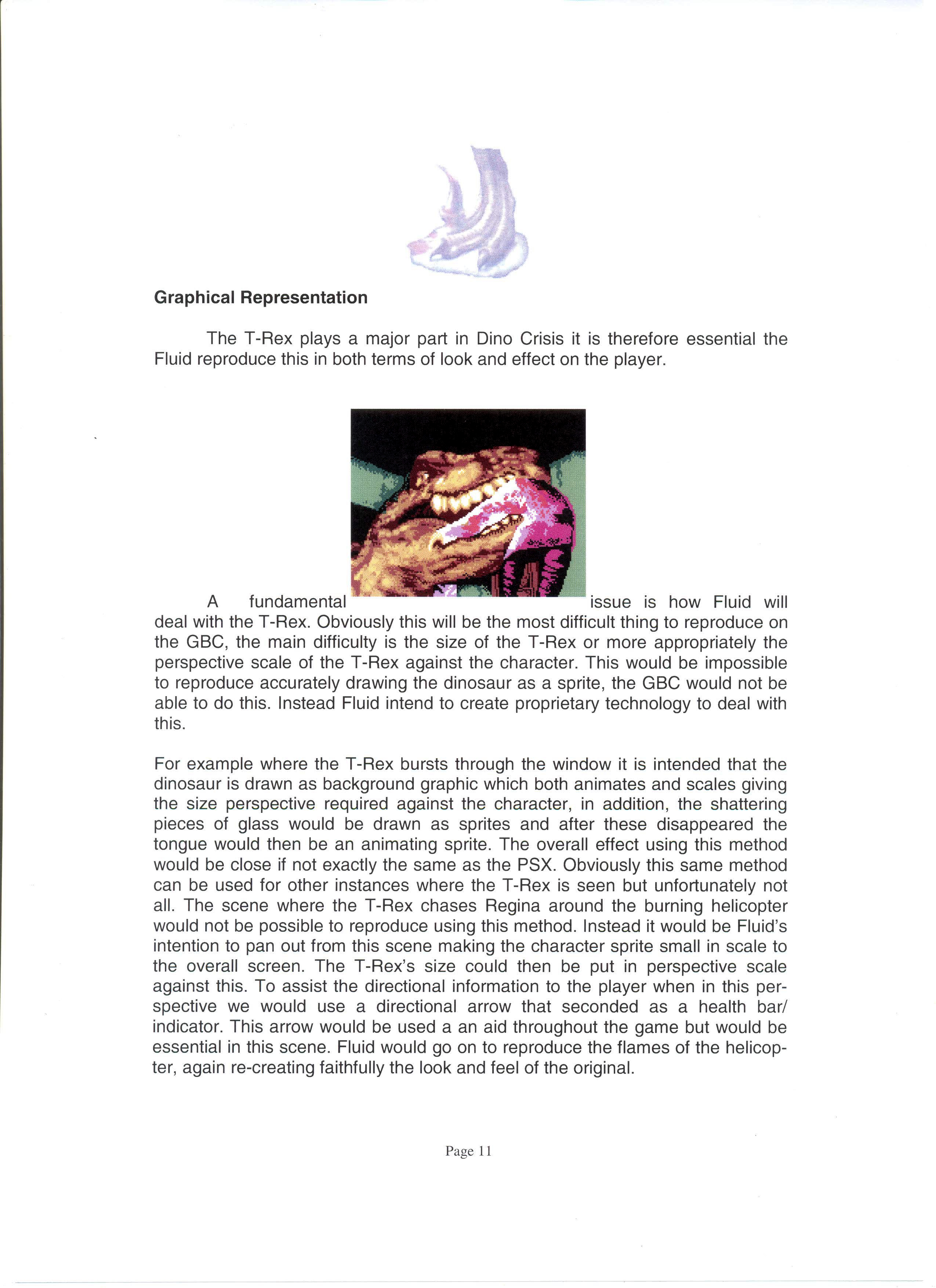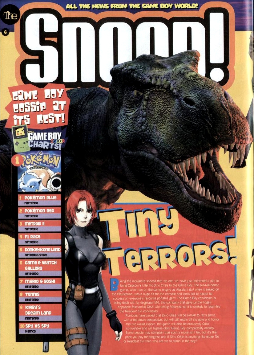 Было создано несколько демо-версий. К разработке были привлечены несколько разных студий, включая M4, которая занималась переносом первой части Resident Evil на GameBoy Color... Но как мы видим, ни Resident Evil, ни Dino Crisis не вышли на эту консоль в качестве порта. Однако, позже, разработка перешла к студии Fluid Studios, концепт-книга которой была слита в сеть. С книгой, на английском языке, вы можете ознакомится лично, в ней описаны как графические особенности игры, так и управление, сюжет и дополнительные режимы.