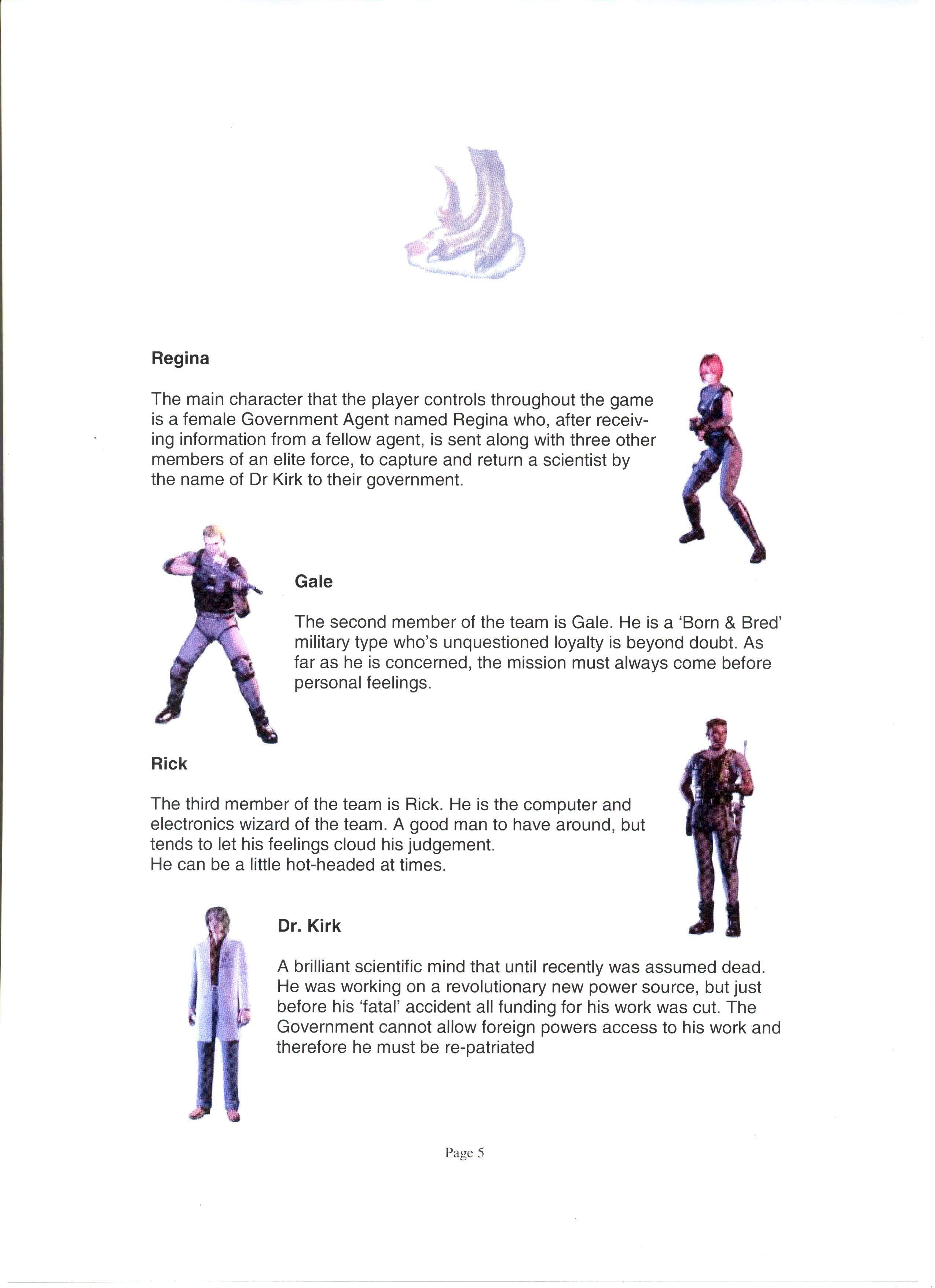 На ранних зарисовках, представленных в путеводителях и арт-книгах к игре, в основном японских, можно заметить иные вариации костюмов Регины, окрасы велоцирапторов и прочих персонажей игры. Однако, найти все, и уж тем более те, что представлены в галерее, в сети - невозможно. Зарисовки представил французский сайт SurvivHor, который работал с CAPCOM много лет. Как говорится "и на том спасибо".