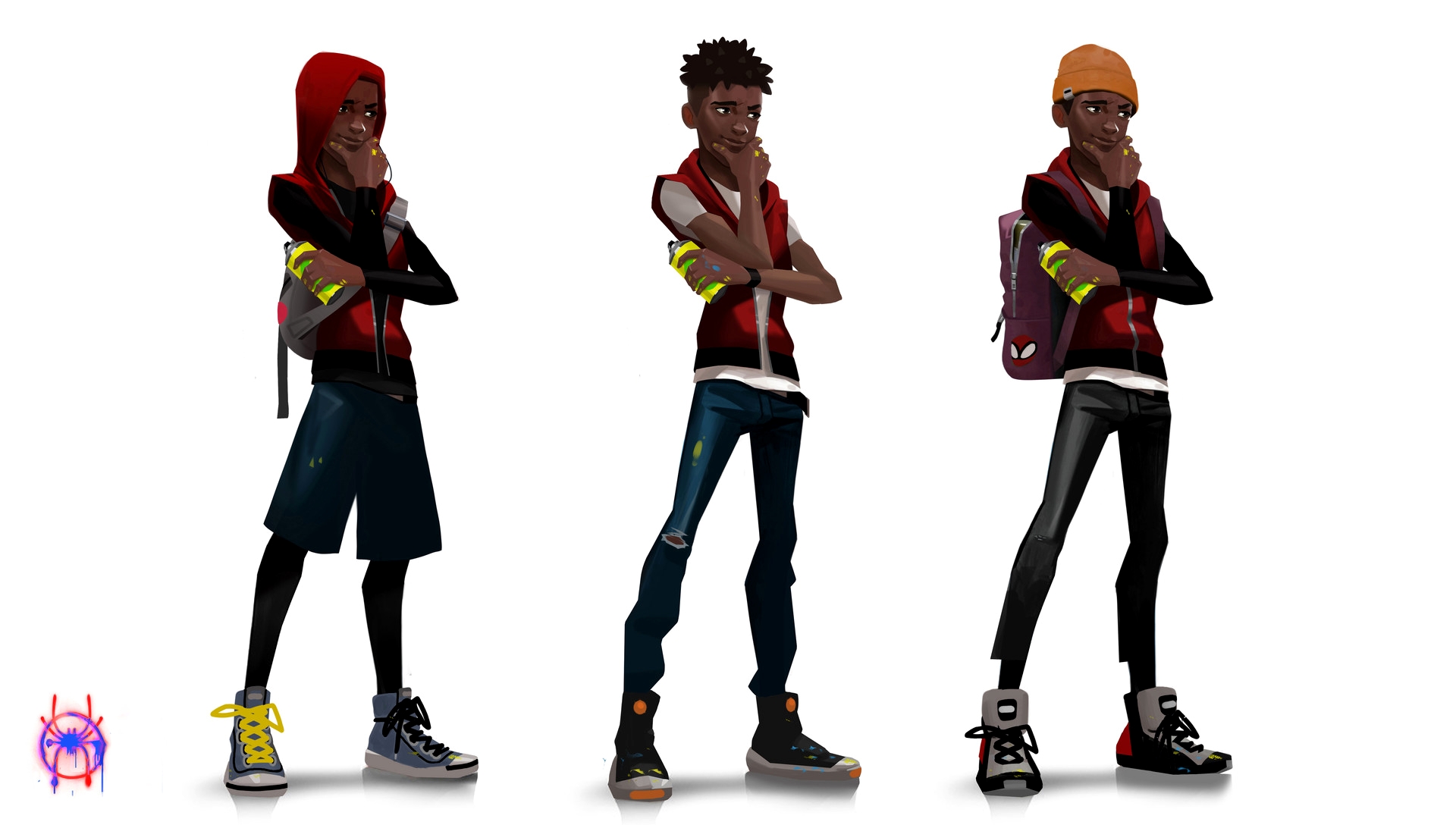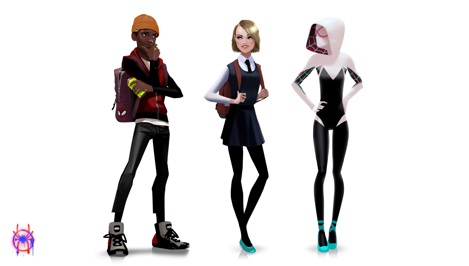 Начали появляться концепт-арты, созданные во время работы над анимационным фильмом «Человек-паук: Через вселенные». Часть артов выкладывают сами художники, другие публикуются в рамках промо-кампании артбука The Art Of Spiderman Into The Spider-Verse.