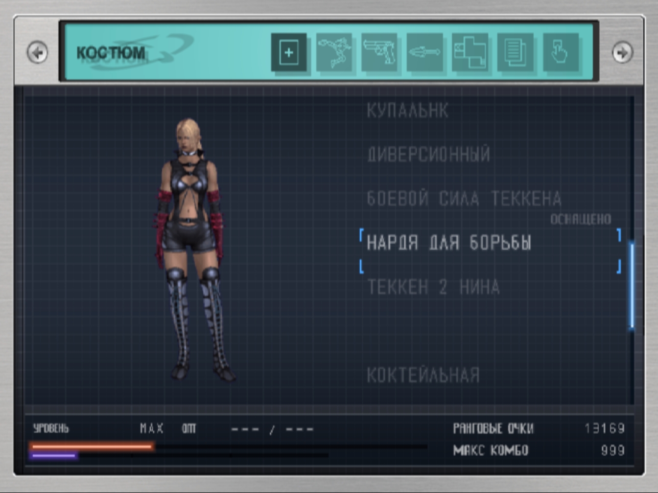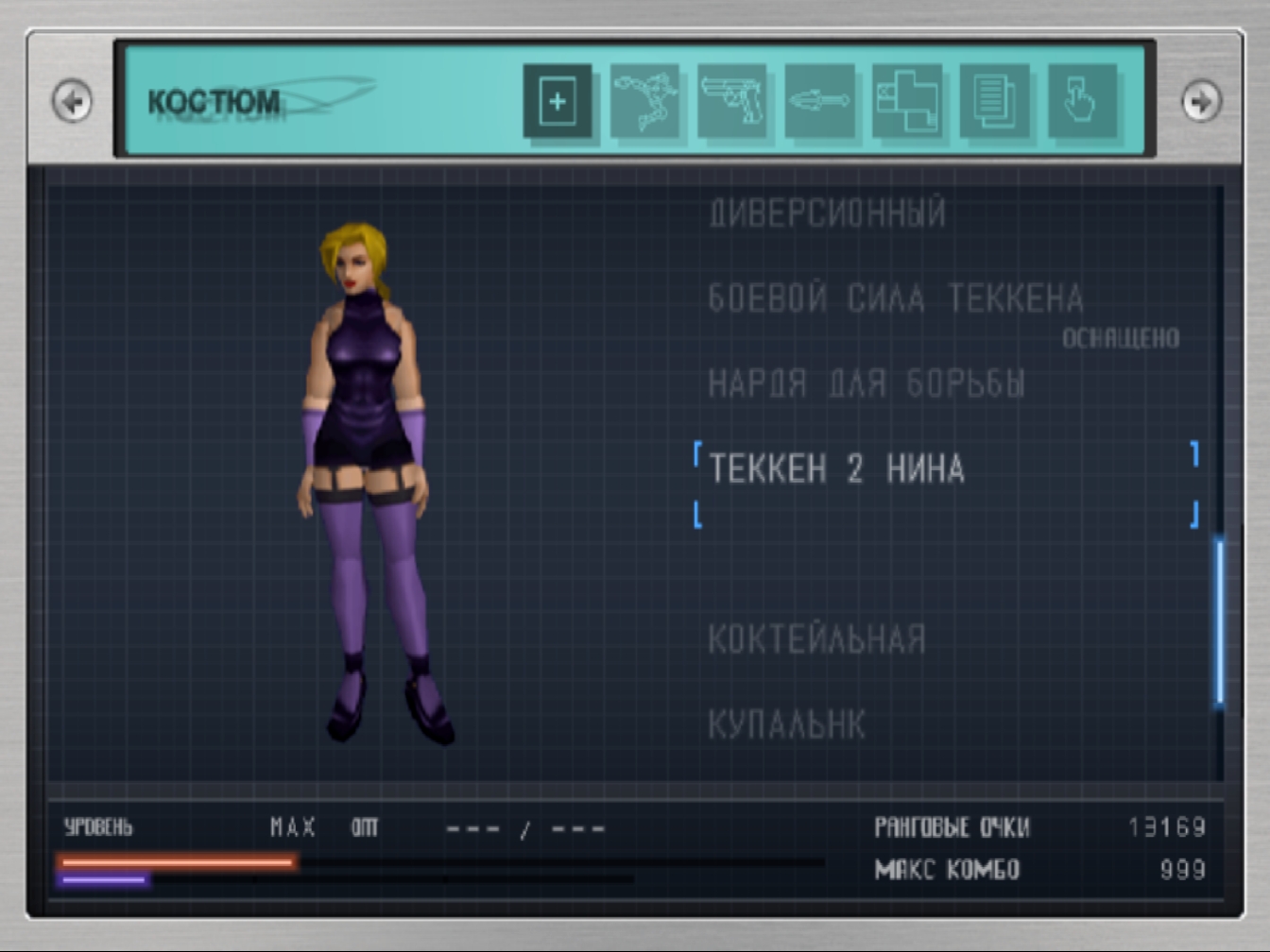 А после прохождения игры, собирая монеты и играя так, что вы будто профи и получите в конце 5 звёзд – откроется сумка с дополнительными костюмами, новых там мало, только тот, что мелькал в роликах и полноценная ретро-модель Нины из второй части Tekken.