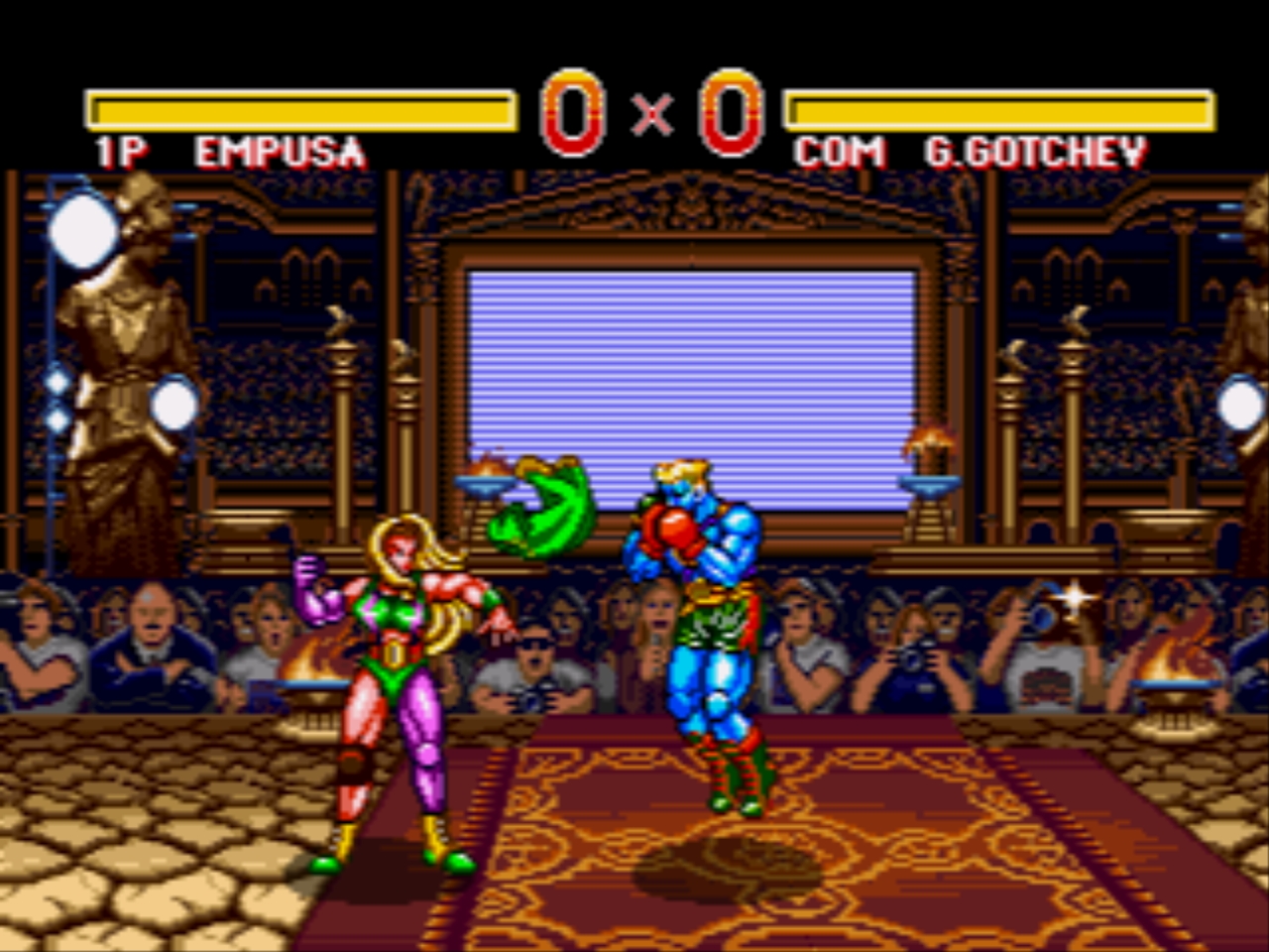 Всего в игре восемь бойцов, а арены разделены на страны, прямо как в Street Fighter II. Боевая система немного странная, но вполне удобная, однако даже поздний прототип не доведён до ума. В прототипе проскальзывает глюк, из-за которого оппоненты во много раз превосходят вас в силе и могут уложить за три удара. Бой разделён на три раунда. Но игру пройти целиком, не имея перед собой друга, который будет в 2019 году играть с вами в прототипы с SEGA CD – невозможно. Всё дело в том, что изначально задумывалось, что играть будут два человека, из-за чего в самом начале просят выбрать двоих персонажей. Однако, дойдя в одиночку до конца, я лишь увидел надпись – "приходите вдвоём, если хотите вызвать меня на бой". После чего дали посмотреть на картинки и отправили обратно в меню...