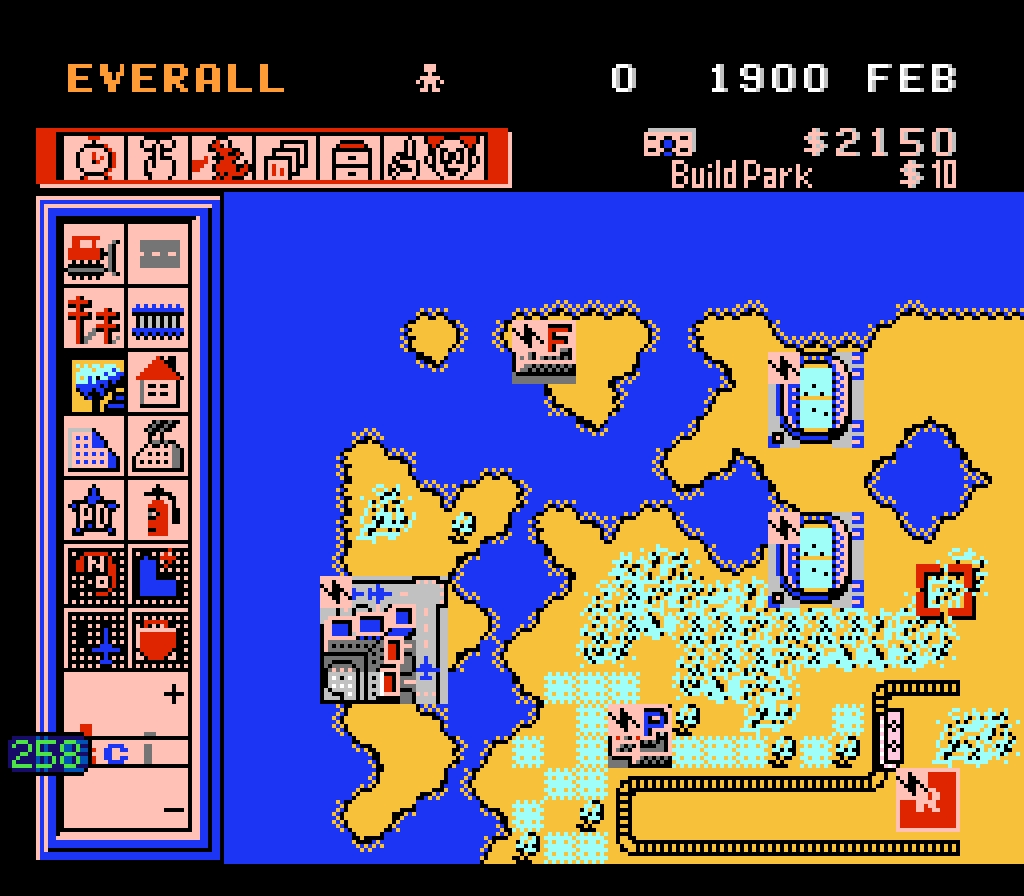 Стоит ли представлять игру, точнее то, что она из себя представляет? Если коротко – строишь свой город и развиваешь его. Как я понял, игра поддерживала функцию сохранения, что для NES большая редкость.