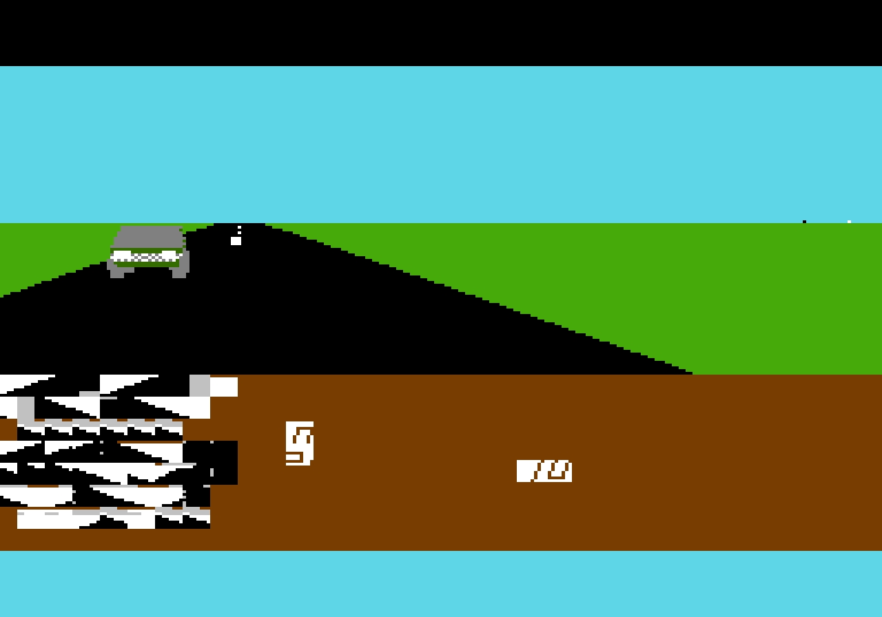 Как вы могли догадаться, всё выглядит крайне плохо, но от ужасного фреймрейта не страдает, вполне играбельно. Правда есть одно маленькое но: эмулируется оно далеко не на всех эмуляторах. Где-то вы сразу, вместо 3D и полигональной дороги, получите набор спрайтов и цифр, а где-то будет игра идти нормально, но рано или поздно пропадёт спидометр.