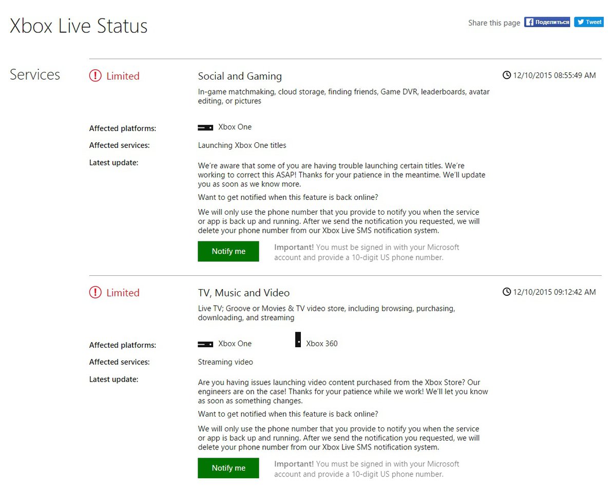 В Microsoft подтверждают наличие проблемы, на странице Xbox Live Status сообщается о проблемах в работе игровых, социальных и видеосервисов Xbox Live.