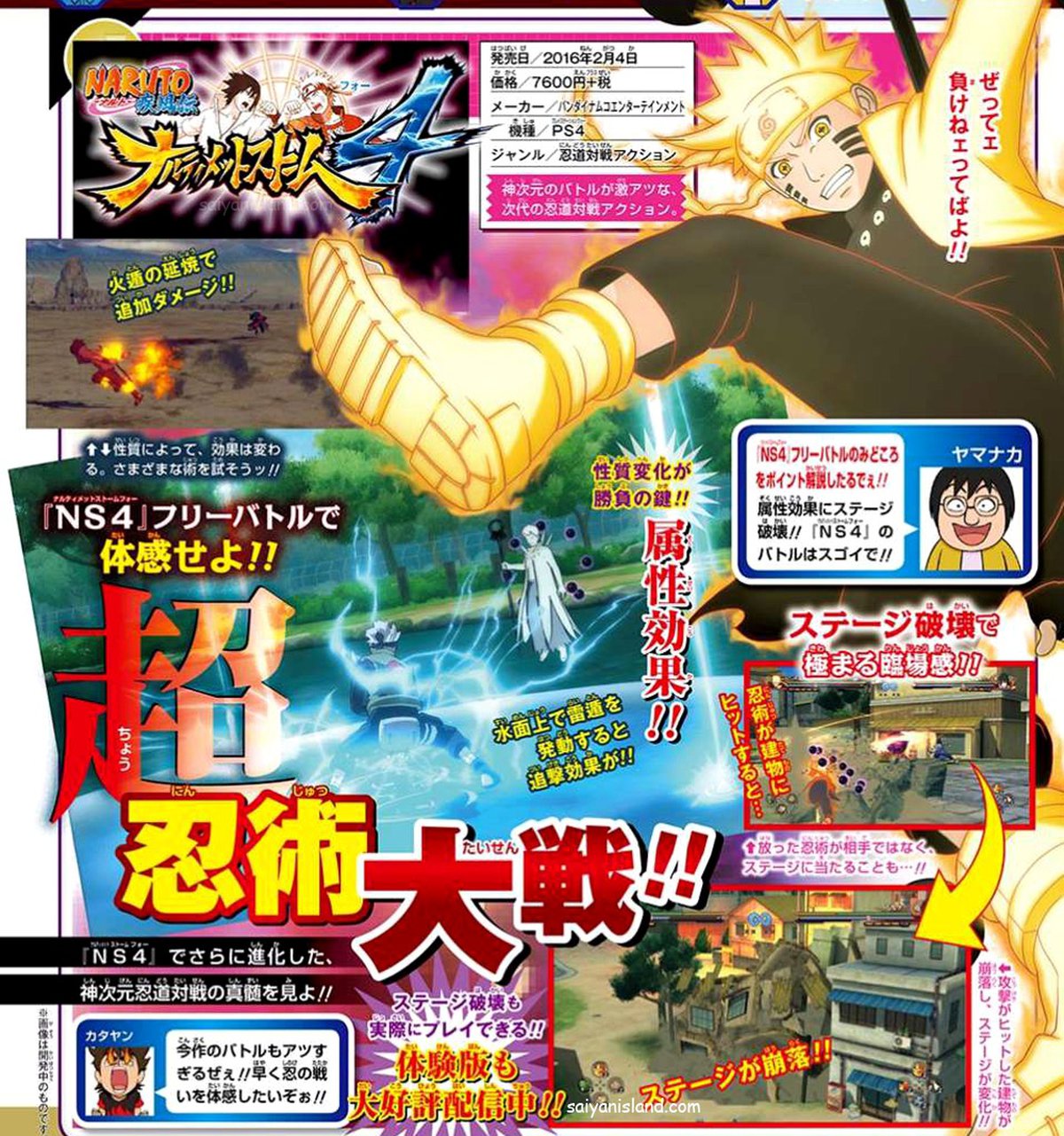 Очередной скан полностью посвящён системе разрушаемости арены во время боя. Как можно видеть на скриншотах, теперь речь идёт уже не о следах огня на поверхности, а о полноценном сносе зданий. Также на скане изображены инновационные для серии Storm негативные эффекты от техник - электризация с использованием воды как проводника и возгорание.