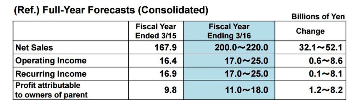 К концу финансового года (31 марта 2016 года) в Square Enix планируют выручить до 200-220 миллиардов йен, на 32-52 миллиарда больше, чем годом ранее. Операционная прибыль компании может составить 17-25 миллиардов йен. 1 миллиард йен это около 650 миллионов российских рублей.