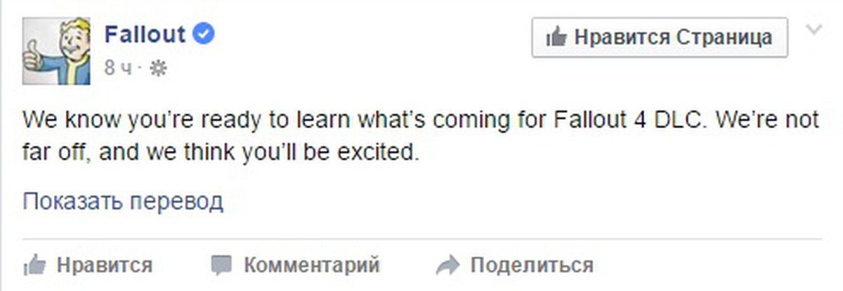 В ближайшем будущем Bethesda может наконец-то анонсировать первые дополнения для вышедшего 3 месяца назад Fallout 4. Этой ночью на странице игры в Facebook было размещено следующее сообщение: