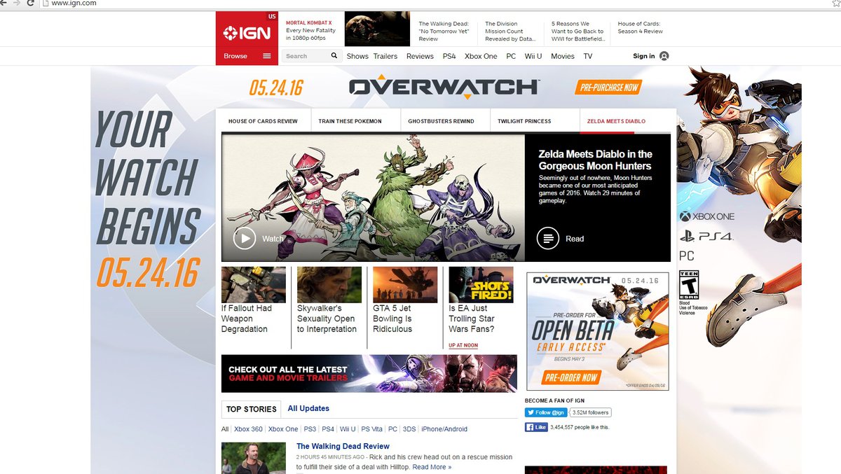 Похоже что американская версия игрового портала IGN только что слила дату выхода Overwatch, первого шутера от Blizzard. Судя по брендированию на главной странице издания, игра выйдет уже 24 мая.