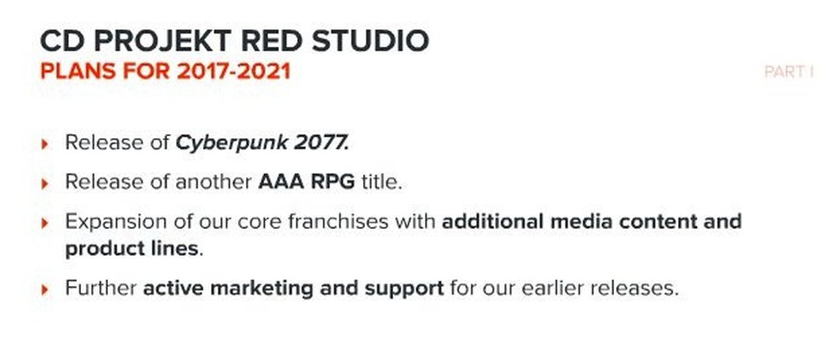 А в 2017-2021 годах CD Projekt RED планирует выпустить Cyberpunk 2077 и, сюрприз-сюрприз, еще одну высококачественную RPG. Кроме того, компания займется медиа-поддержкой уже вышедших игр.