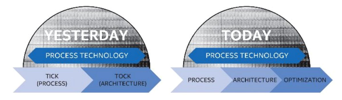 Судя по отчету, Intel планирует изменить свою стратегию с "тик-так" (уменьшение техпроцесса - улучшение архитектуры) на "процесс-архитектура-оптимизация" (уменьшение техпроцесса-улучшение архитектуры-оптимизация производительности). Другими словами, принципиально новые процессоры Intel будут появляться реже, чем раньше.