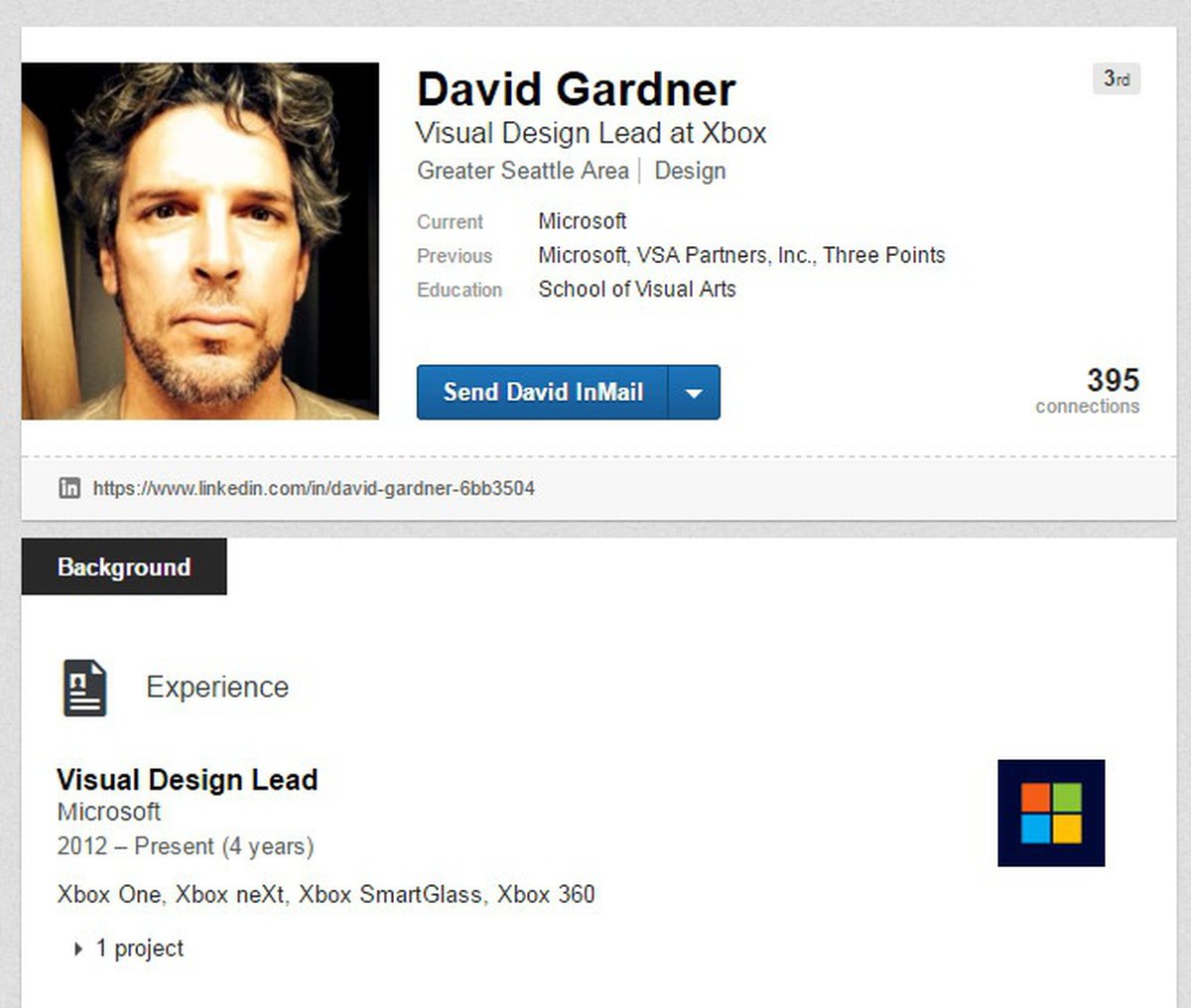 Судя по профилю, Гарднер, работающий в Microsoft уже 10 лет, за последние 4 года успел поработать над проектами Xbox One, Xbox 360, Xbox SmartGlass (приложение-компаньон) и Xbox neXt.