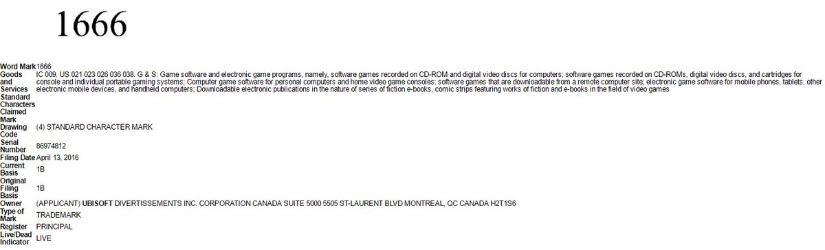 Возможно, в Ubisoft что-то затевается - на прошлой неделе французская компания обновила торговую марку 1666, которая изначально должна была использоваться в новом проекте Патриса Десиле, создателя серии Assassin’s Creed.