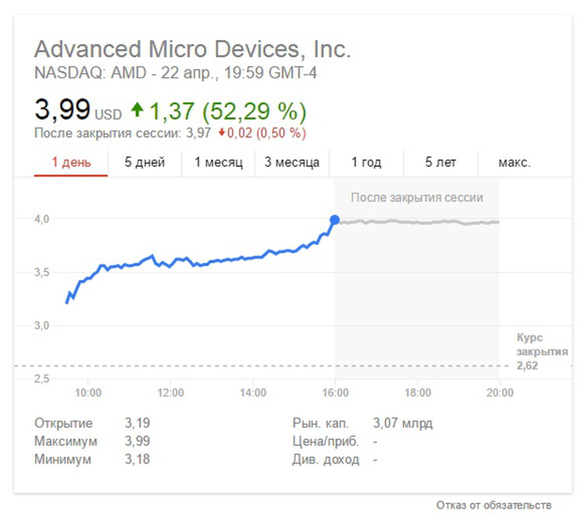 Стоимость акций AMD выросла на 52% за день