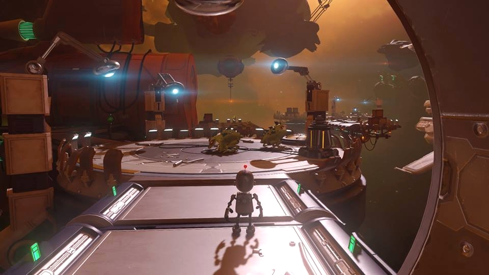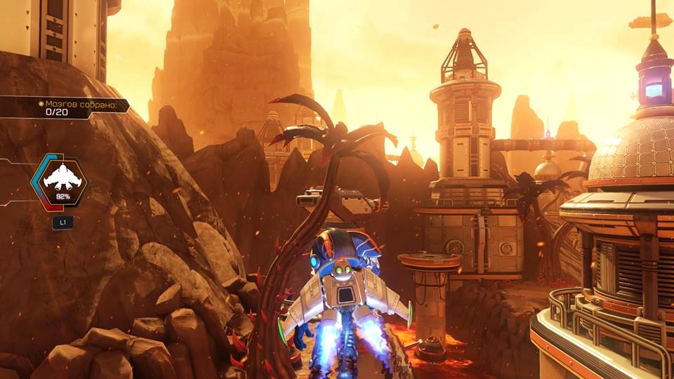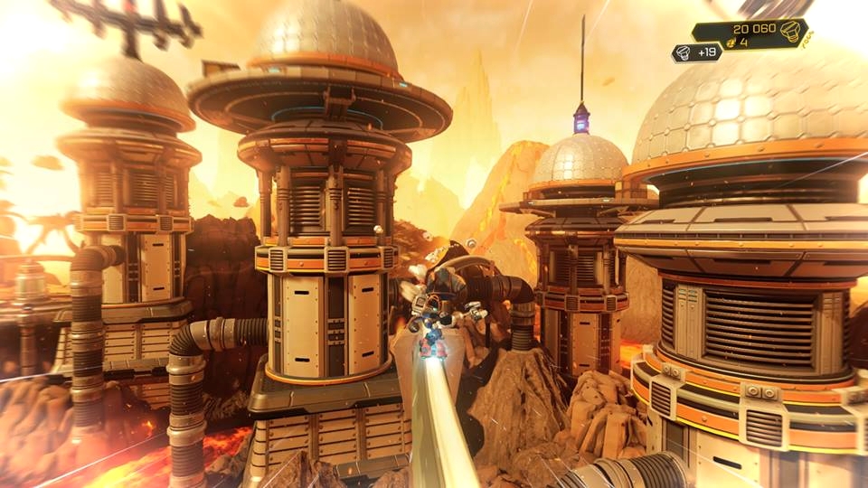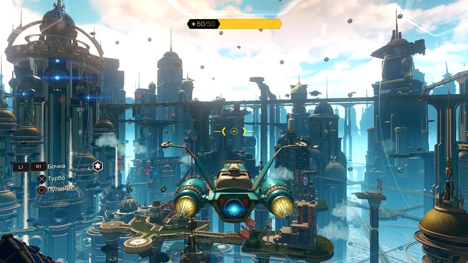 За Рэтчета нам придётся играть большую часть времени. У него есть мульти-ключ чтобы бить врагов и очень, очень много огнестрельного оружия, которые мы находим по прохождению игры. Так же у него в арсенале есть вертушки с помощью которых он может взлетать на небольшие расстояния, магнитные ботинки с помощью которых он может лазать по стенам (важная деталь – НЕ ПО ВСЕМ СТЕНАМ), ускоритель который открывается почти в конце игры, и джекпак( назовём его так). Ещё в игре будут моменты где мы будем передвигаться по мною называемым шпалам(очень кстати напоминает соник heroes). Передвигаться по ним довольно-таки интересненько так как надо будет перепрыгивать в определённый момент через препятствия и бить мешающиеся штуки (извините я никак не могу больше назвать хрени которые мешаются на пути).