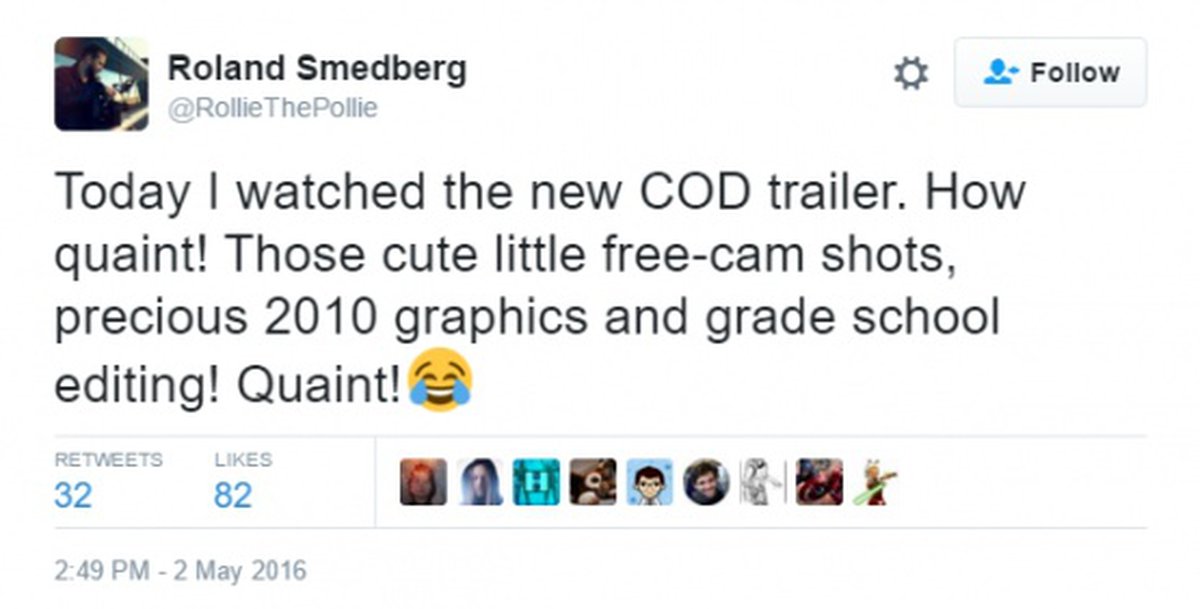 Видел сегодня новый трейлер COD. Прелестно! Эти милые ракурсы, потрясающая графика образца 2010 года и режиссура в стиле начальной школы. Прелестно!
