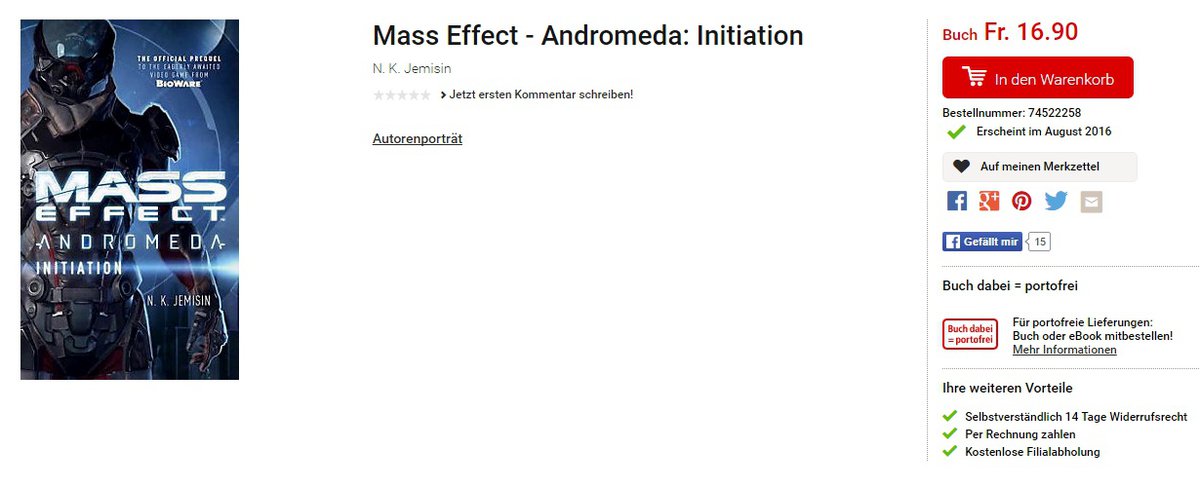 Пару дней назад участники официального форума BioWare сделали интересное открытие: оказывается, на август этого года запланирован выпуск новеллы под названием Mass Effect - Andromeda: Initiation.