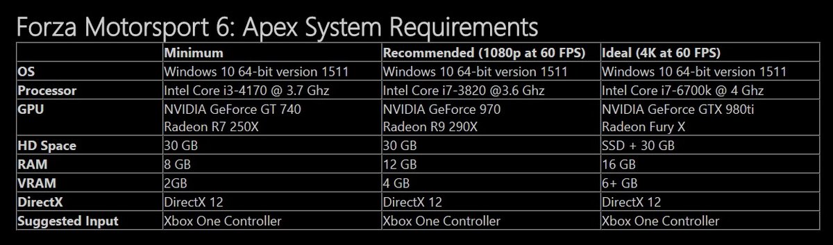 На всякий случай напоминаем системные требования игры - Forza Motorsport 6: Apex запустится далеко не на любом железе.