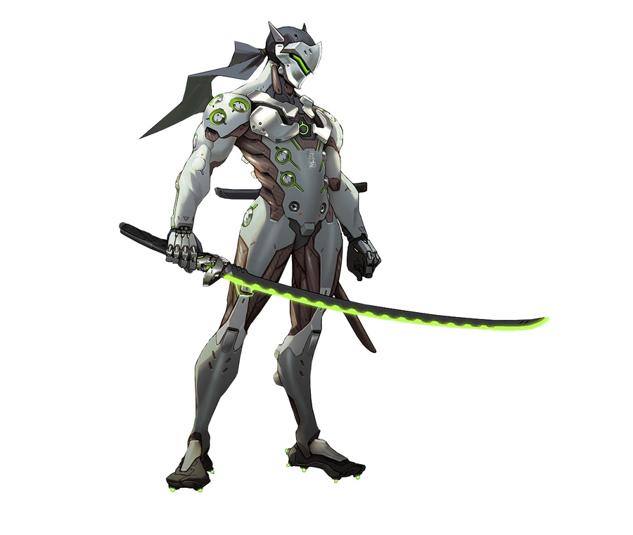 Гэндзи. Этот самурай так же силен, как и сложен в освоении. Он мечет сюрикэнами как по прямой, так и веером и способен бросаться вперёд и наносить урон всем на своём пути. Помимо всего этого, при хорошей реакции, герой способен отразить любой направленный в него снаряд, включая ультимэйт, и направить его обратно во врага. Также он достаточно ловок, чтобы забираться вверх по стенам и совершать двойные прыжки. Его суперспособность называется клинок дракона и позволяет вам наносить огромное количество урона в ближнем бою с помощью катаны. Небольшая подсказка: когда он обнажает свой клинок, не слушайте свои инстинкты самосохранения, а постарайтесь его убить. В конце концов, вам от него не сбежать.