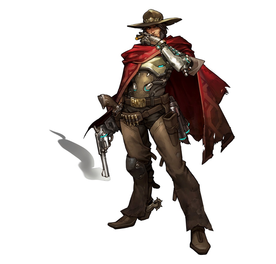 Маккри — классический ковбой, вооружённый шестизарядным револьвером. Стреляет либо меткими одиночными выстрелами, либо разряжает весь барабан сразу, но в этом случае разброс пуль будет значительным и такой метод ведения огня является эффективным лишь на ближних дистанциях. Его первая способность — это кувырок. С его помощью Маккри перемещается на небольшое расстояние и моментально перезаряжает оружие. Также при нём всегда есть свето-шумовая граната, которая способна оглушить противников в небольшом радиусе. Она может быть весьма полезна при поимке Трейсер, так как прыгунья обладает небольшим количеством здоровья, её можно прикончить с одного разряженного барабана в упор. Ультимэйт этого героя прост — после небольшой задержки, Маккри убивает всех врагов в поле зрения с одного очень меткого выстрела.