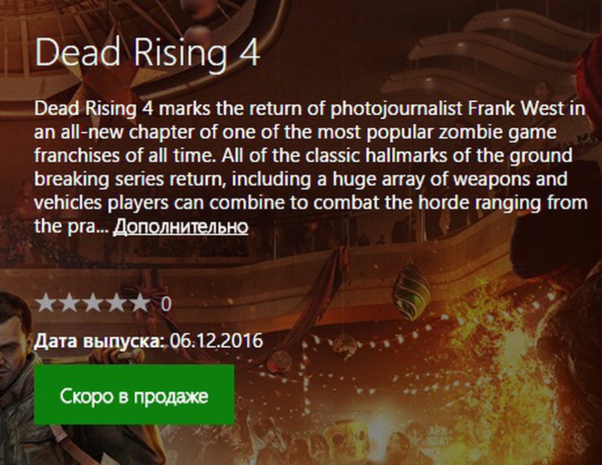 Microsoft и Capcom Vancouver пока не называли точную дату выхода Dead Rising 4 - упоминалось лишь, что игра выйдет перед новым годом - но дата все-таки просочилась в прессу раньше времени. Предателем оказался Xbox Store.